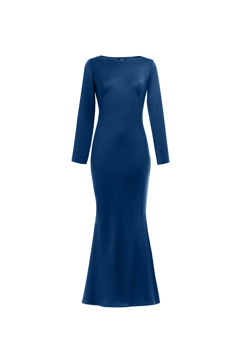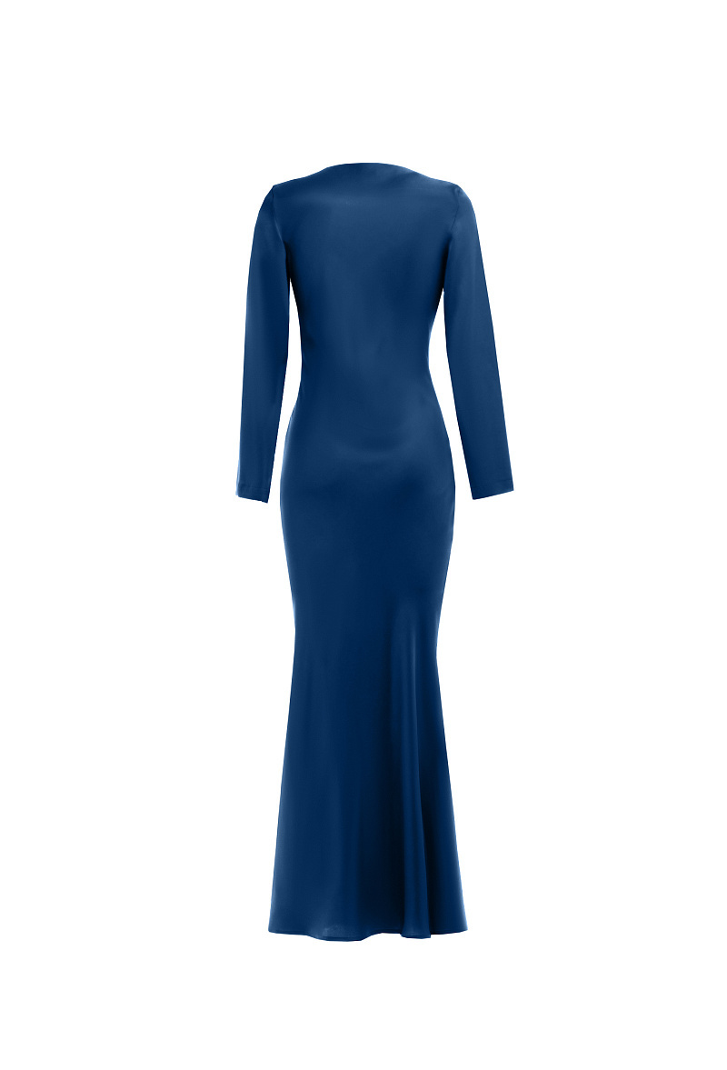 Платье приталенное с длинными рукавами синее 06-01-25 SS