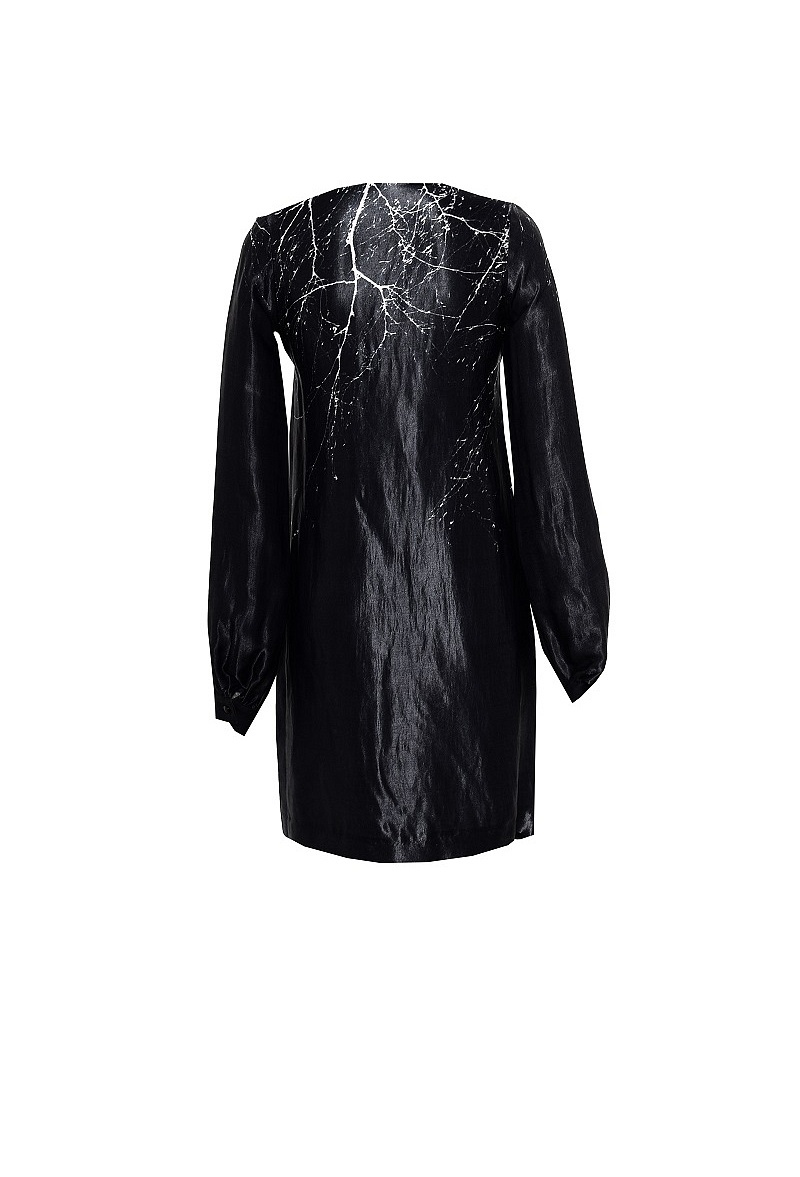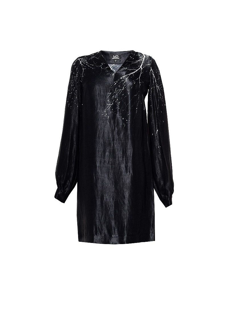 Прямое платье из вискозы с длинными рукавами на манжетах и рисунком.