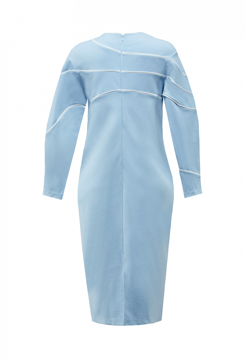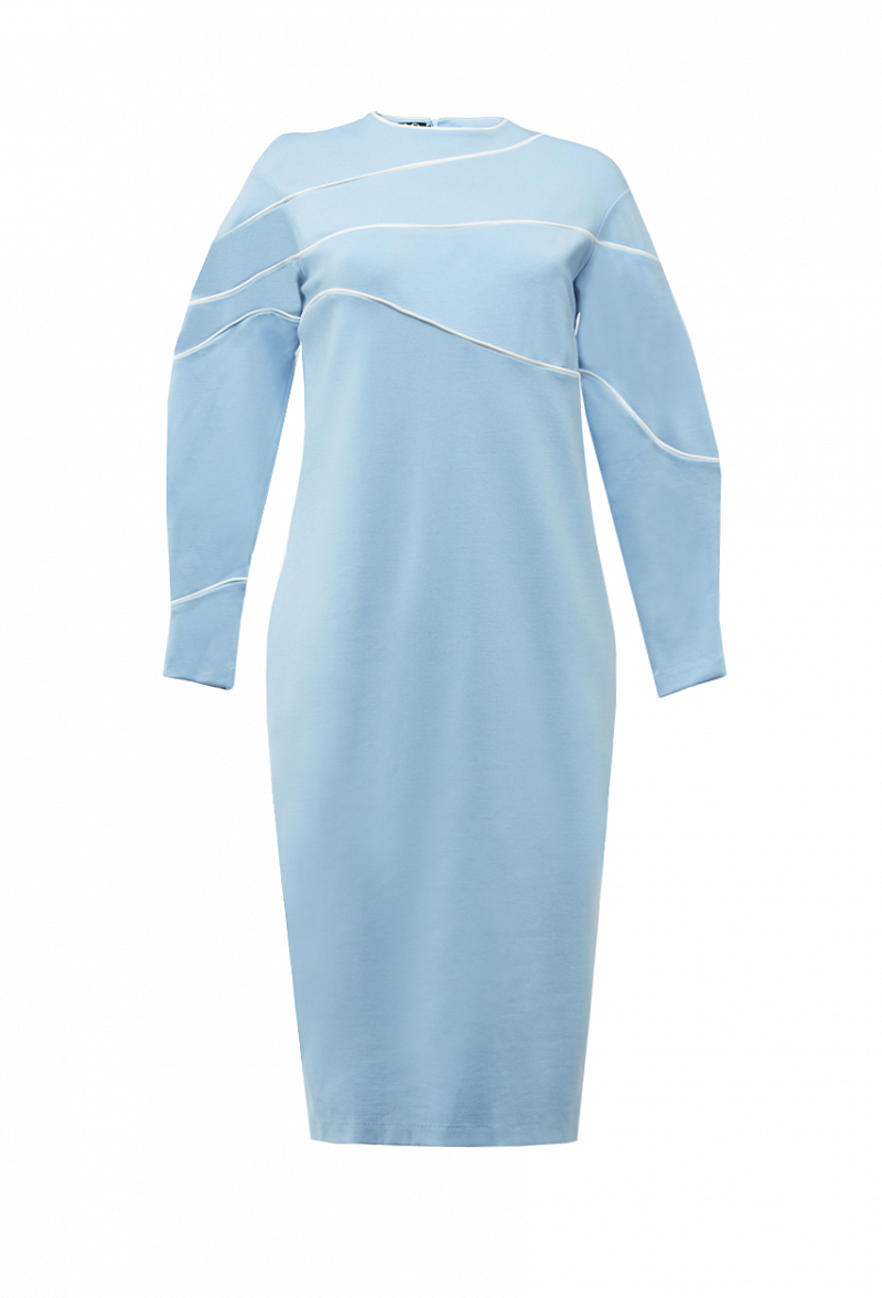 Платье прямого кроя с графическими контрастными элементами и фигурным рукавом cпрорезными карманами