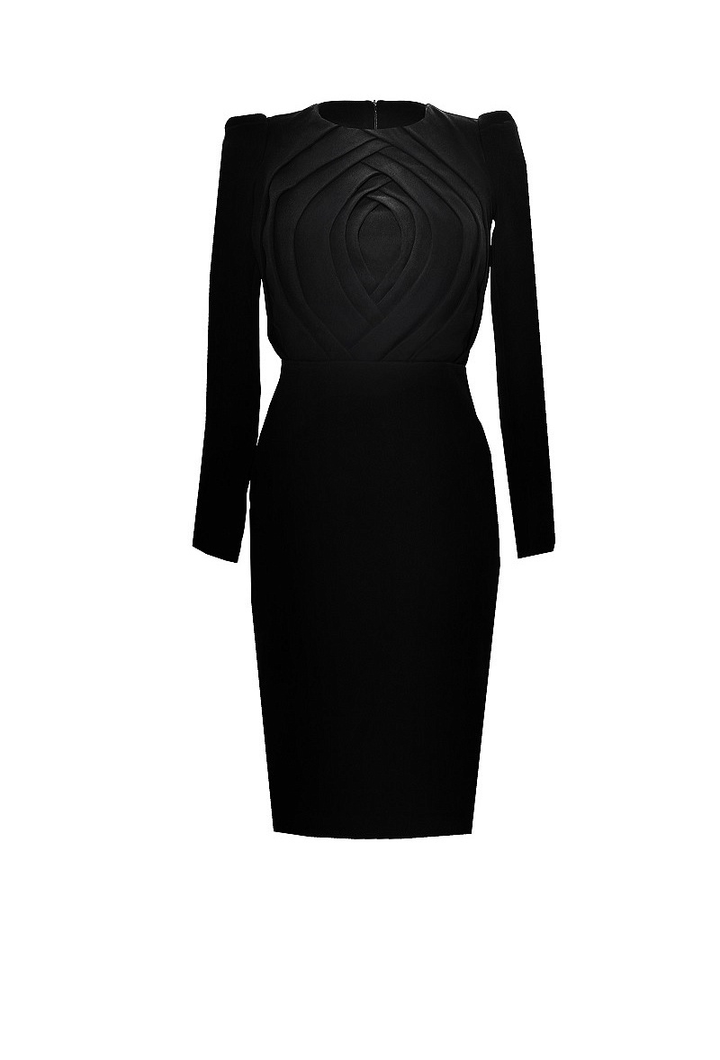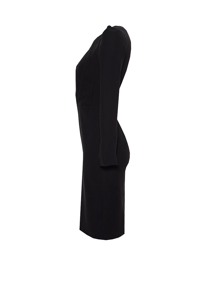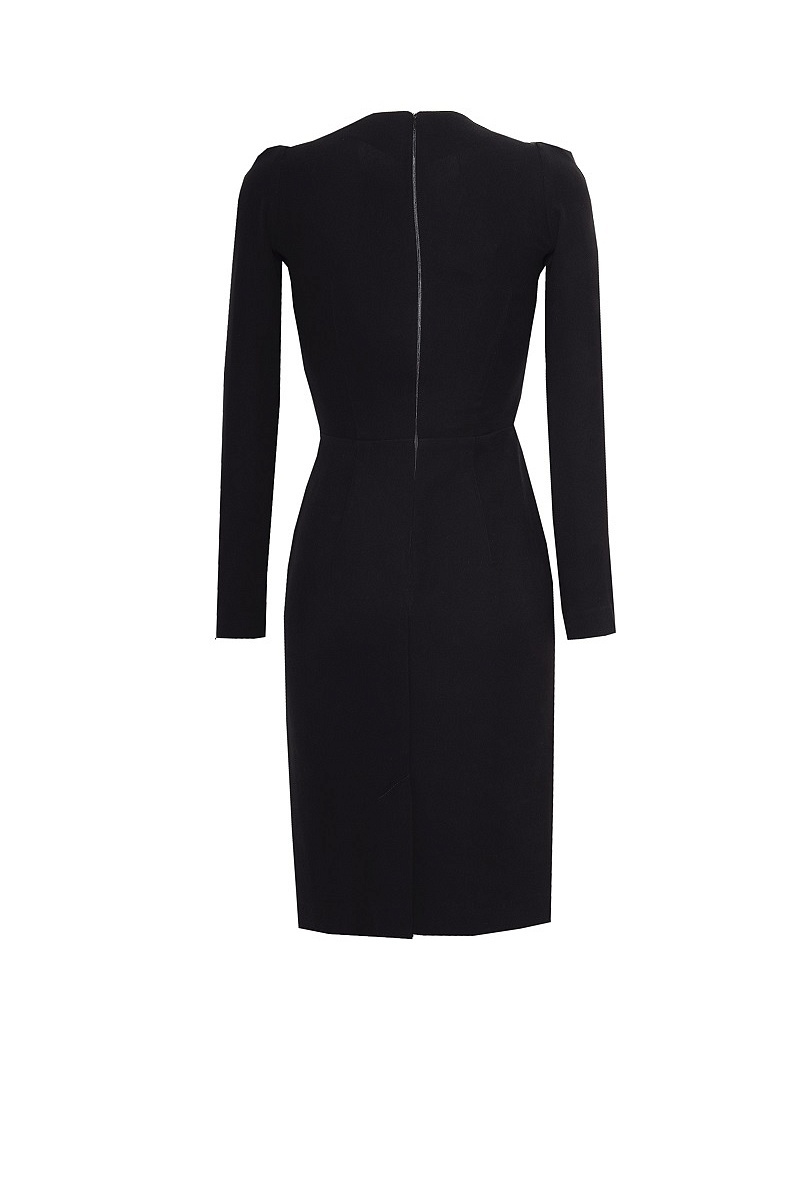 Креповое платье-футляр с длинным рукавом и дизайнерской полочкой в виде розы.