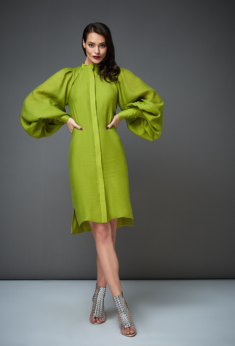 Платье - рубашка с потайной планкой травяное 32-02-20 SS