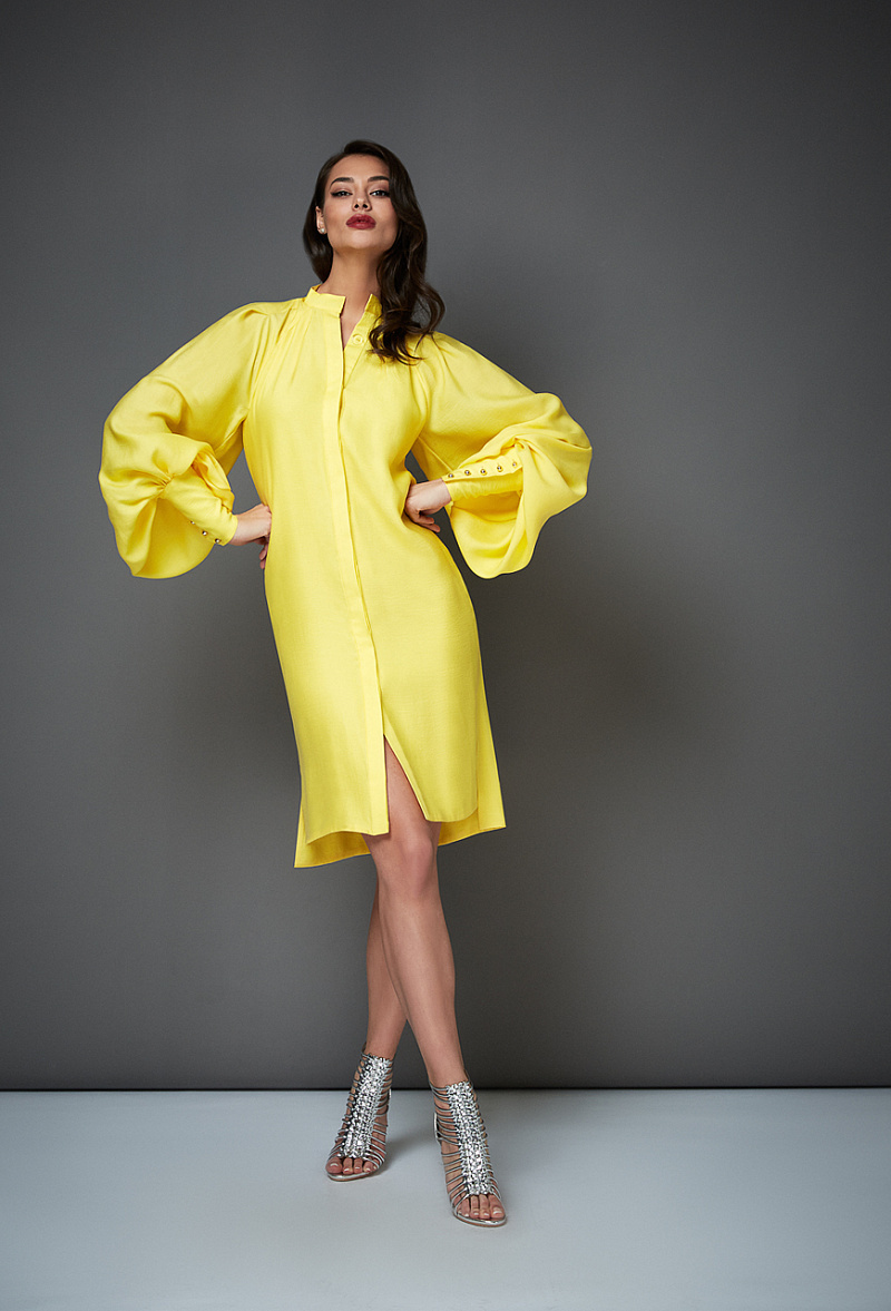 Платье - рубашка с потайной планкой жёлтое 32-01-20 SS