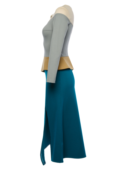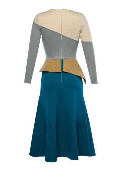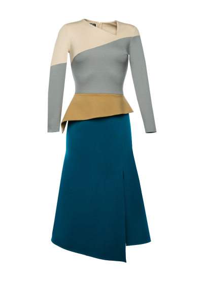 Платье с ассиметричной баской, ассиметричный вырез горловины, юбка «трапеция»