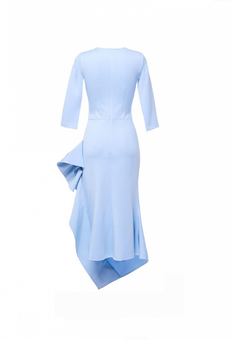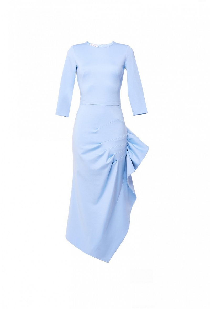 Платье с ассиметричными защипами на боку юбки голубое 14-01-19FW