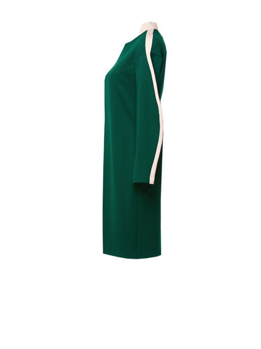 Платье прямого кроя с воротником стойка на кнопке, фигурным рукавом и контрастным лампасом