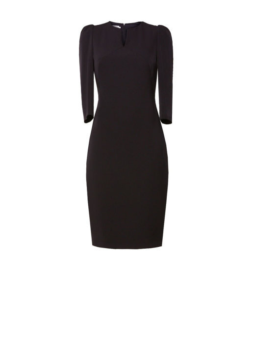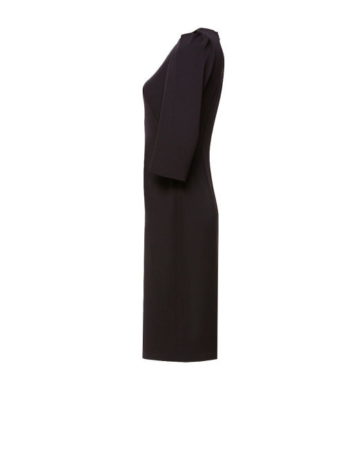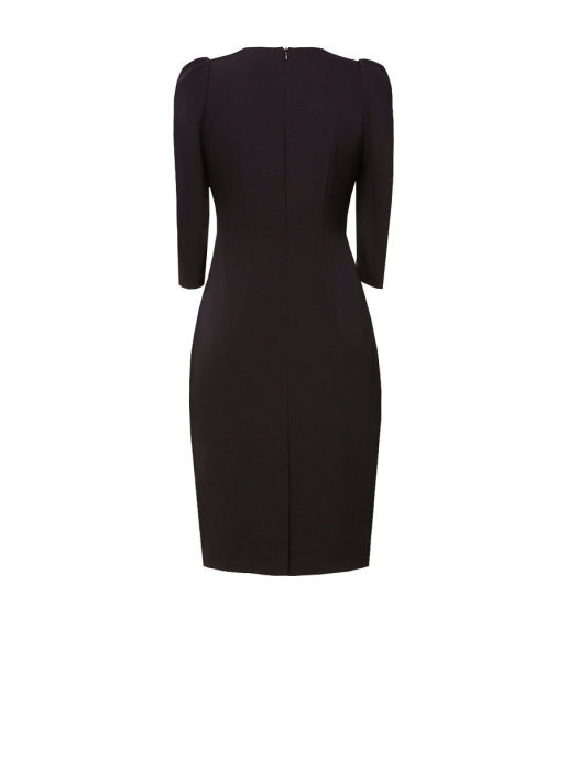 Платье футляр с V образной горловиной, рукавами со складками на плечах