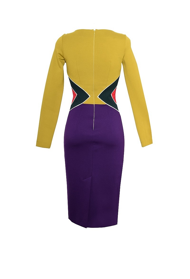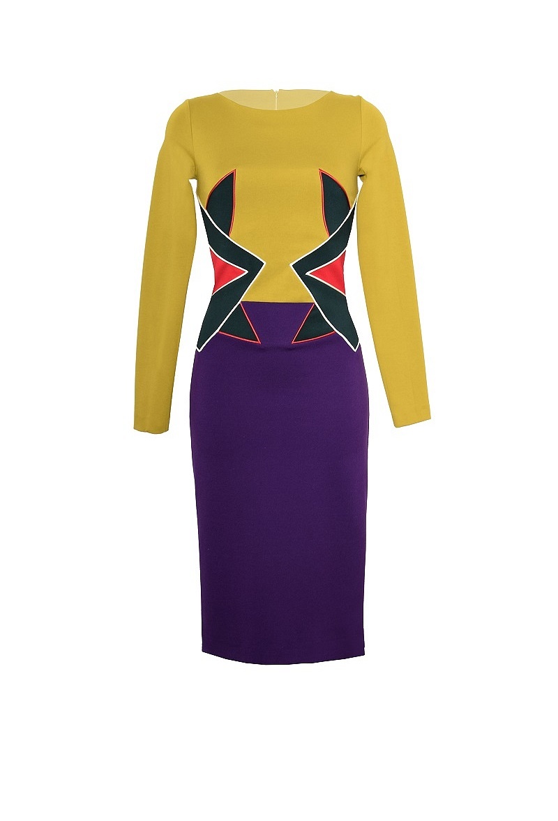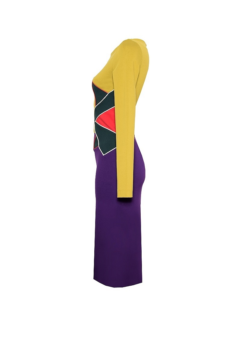 Трикотажное платье с боковыми графическими вставками по форме звезды.