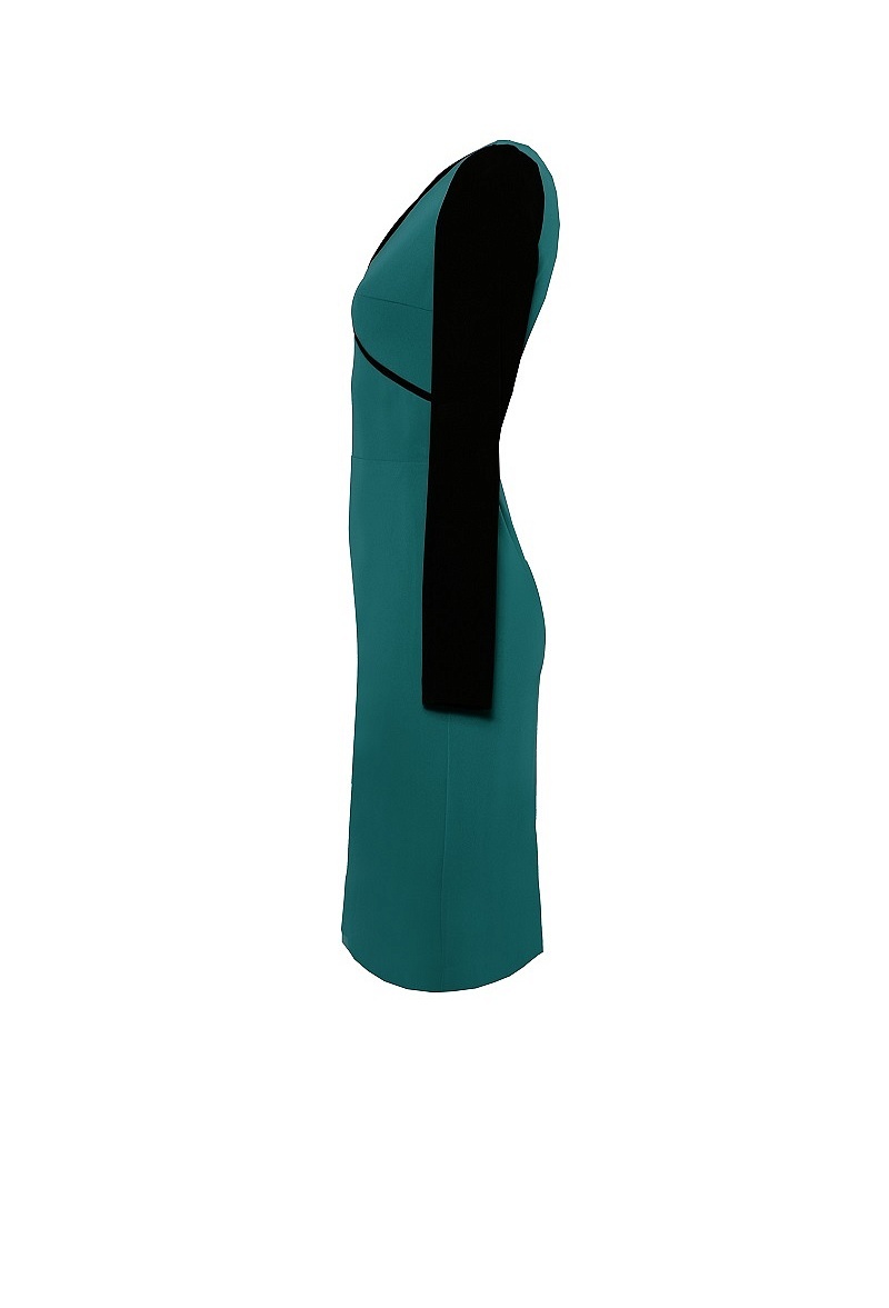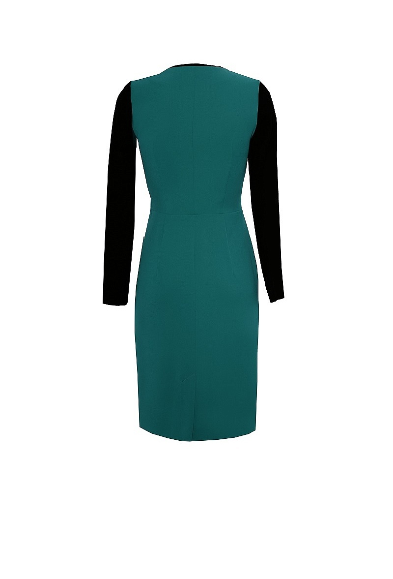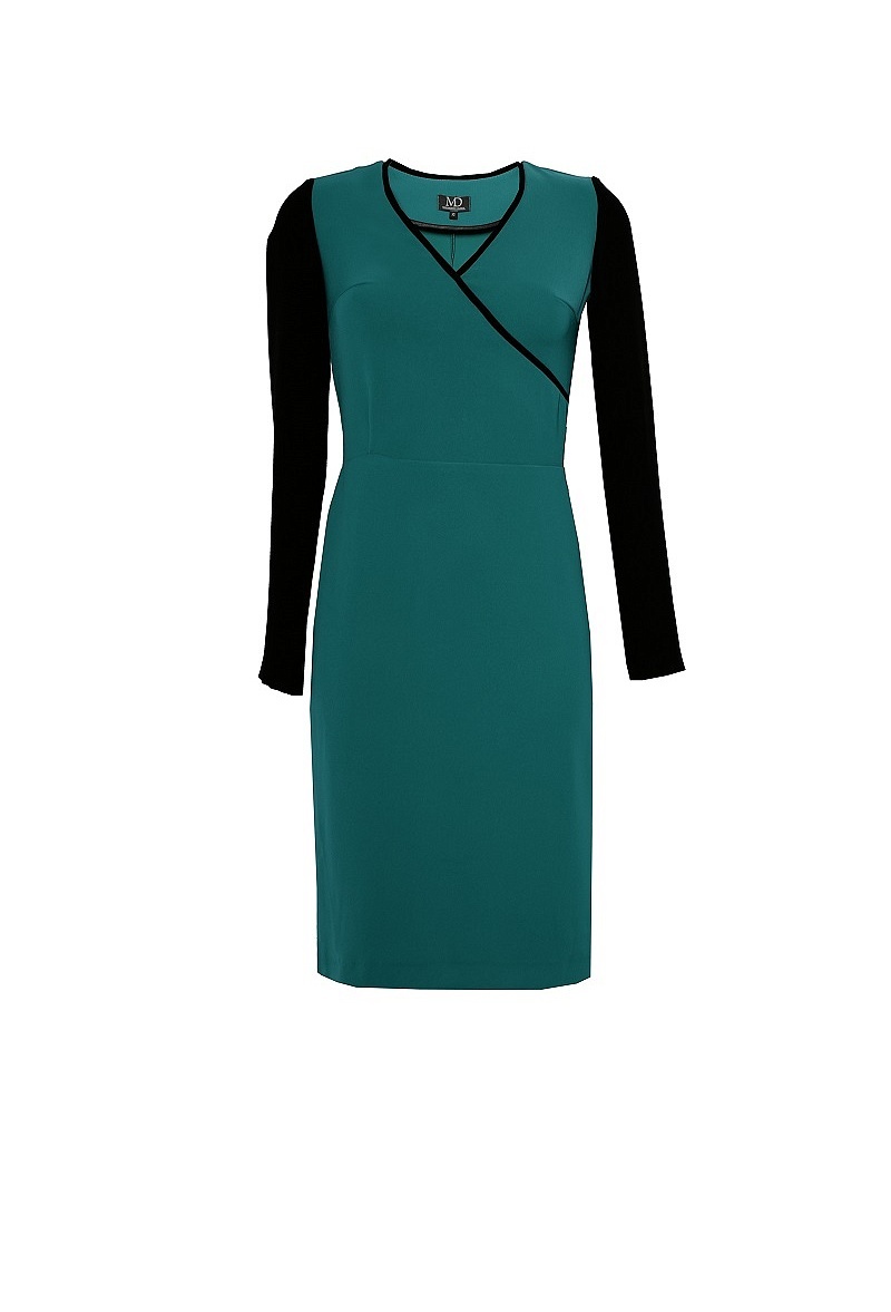 Повседневное платье с имитацией запаха и контрастными рукавами.