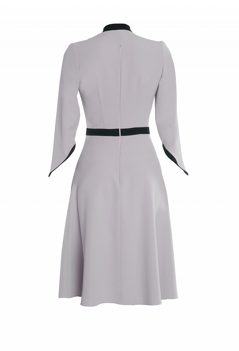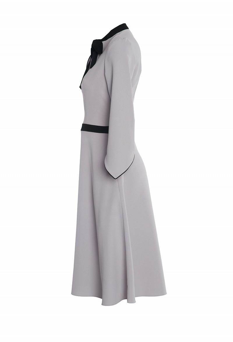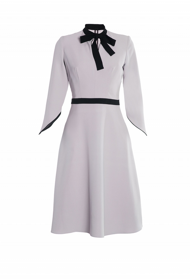 Платье с контрастным поясом и воротником-галстуком 09-17FW