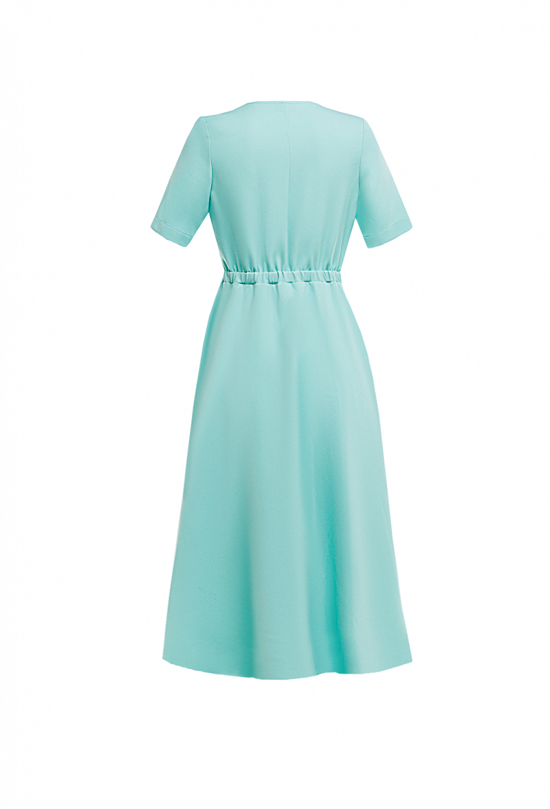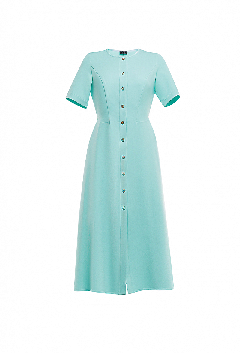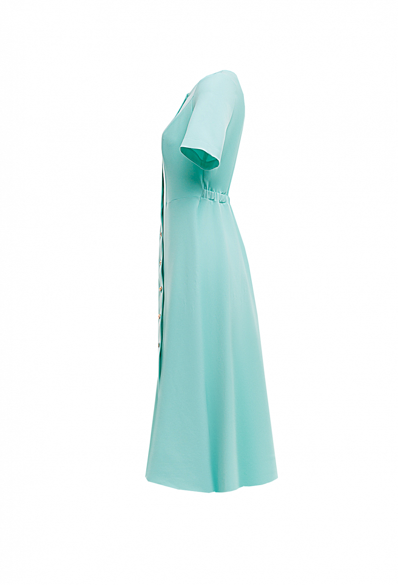 Платье с коротким рукавом на пуговицах мятное. Подрезными бочками и кулиской. Длина миди.