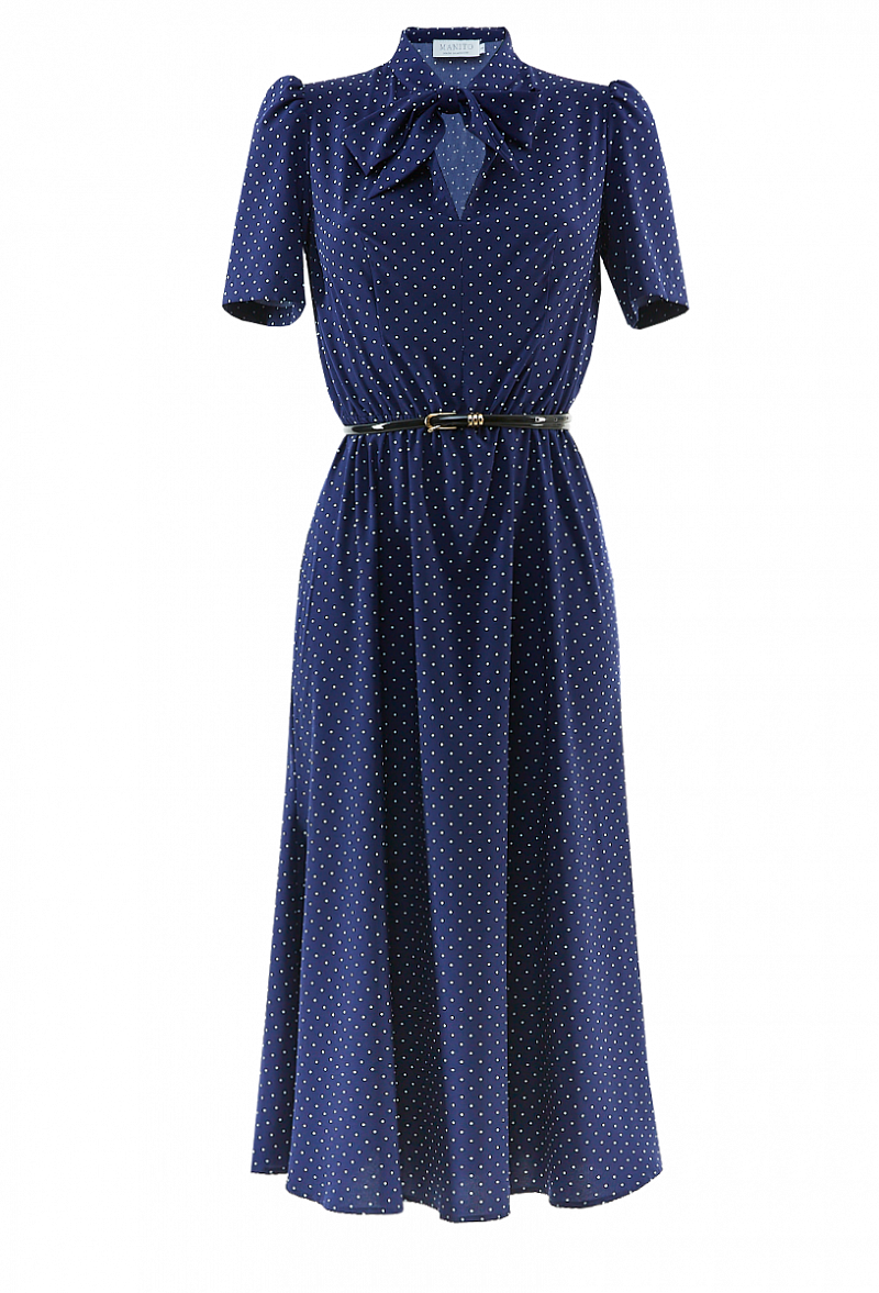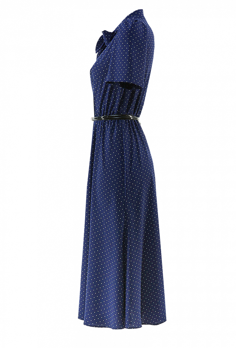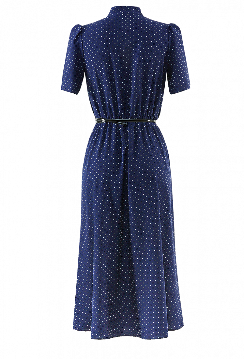 Платье с коротким рукавом в мелкий горох темно-синее 05-03-20 SS