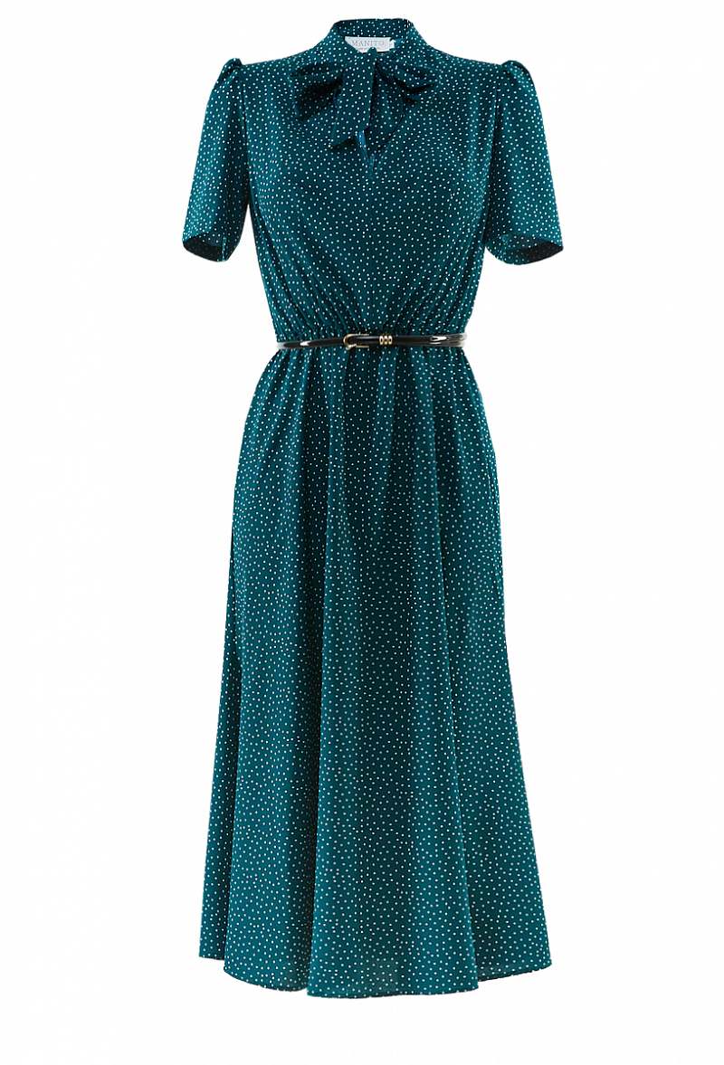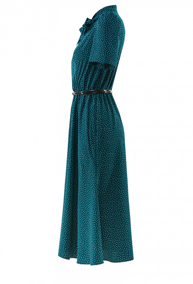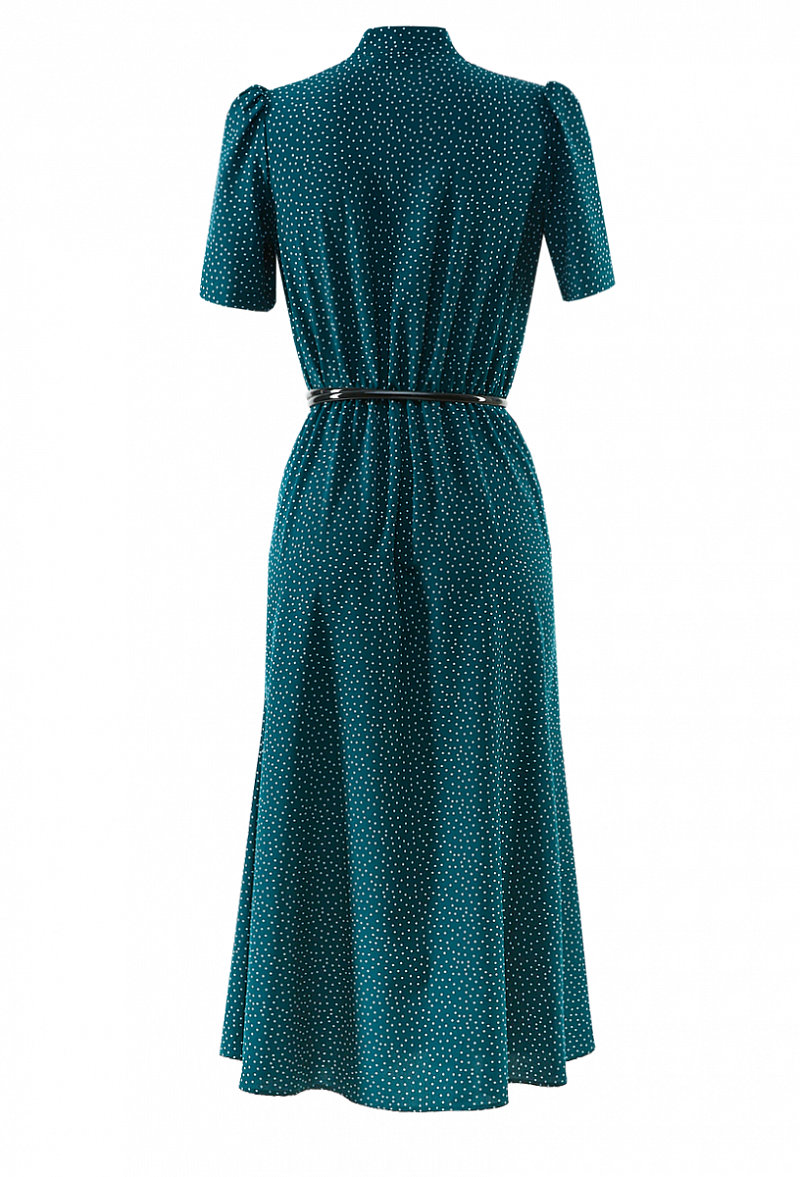 Платье с коротким рукавом в мелкий горох зеленое 05-02-20 SS