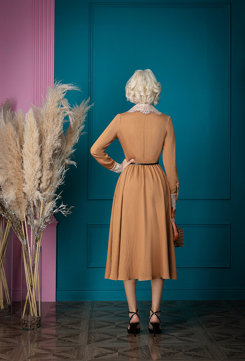 Платье с кружевными воротником и манжетами 03-03-24 FW