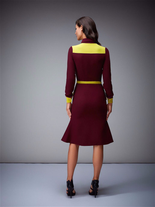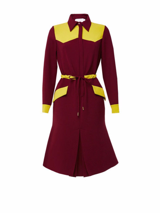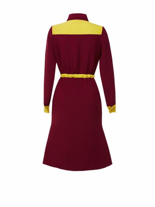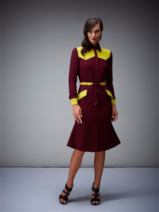 Платье с кулиской, воротником стойка, отрезной кокеткой, на молнии закрытой планкой, юбка с прорезными карманами и клапанами, рукав с манжетами