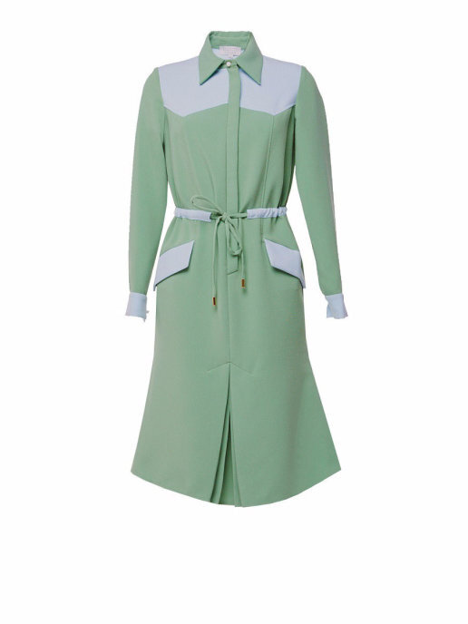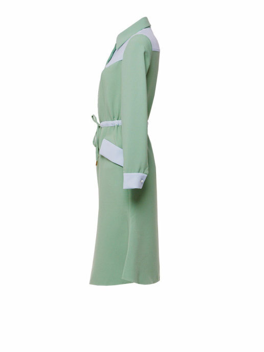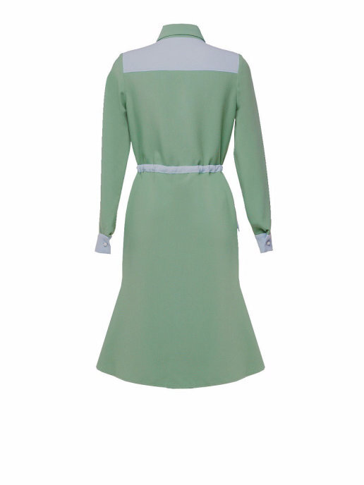Платье полуоблегающего силуэта с длинными рукавами, отложным воротничком, контрастной отделкой и застежкой "молния"