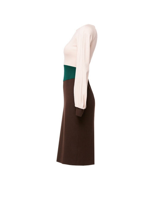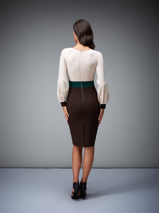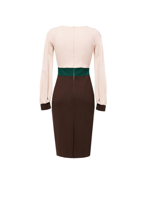 Платье с отрезным лифом коричнево-бежевое 07-02-19FW