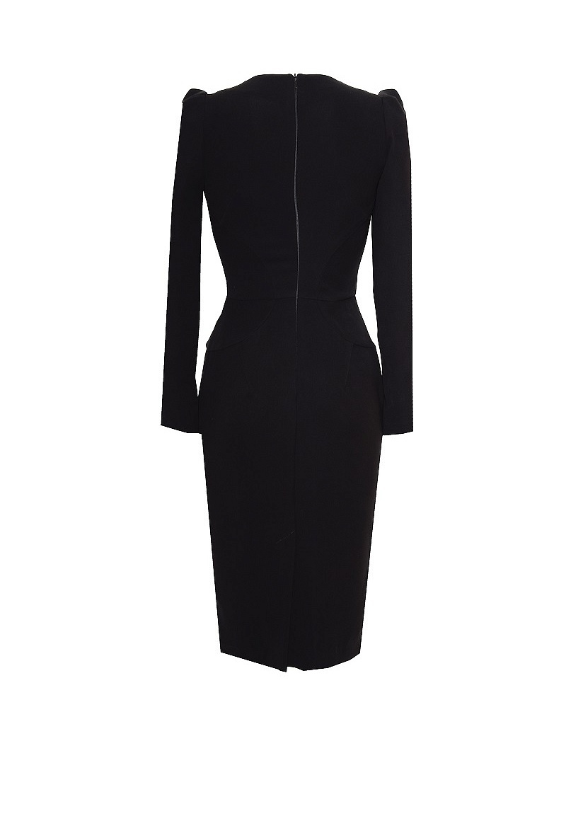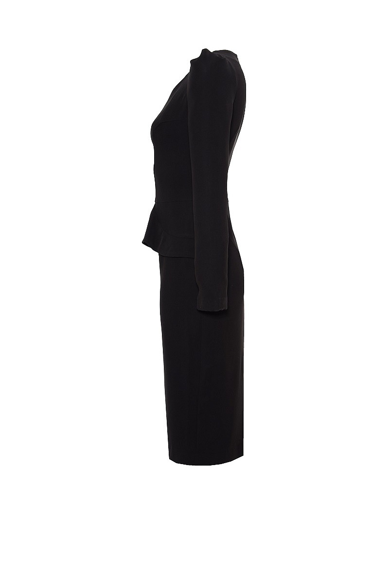 Креповое платье с длинным рукавом и резной баской.