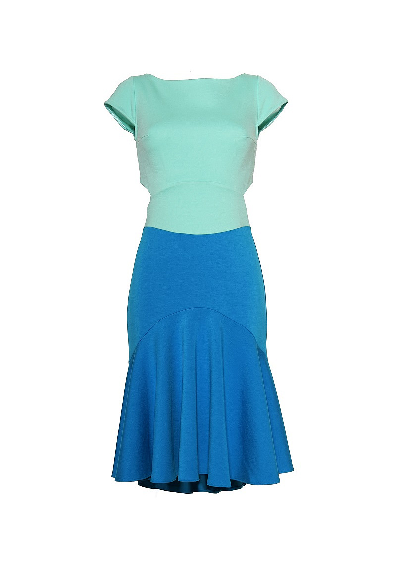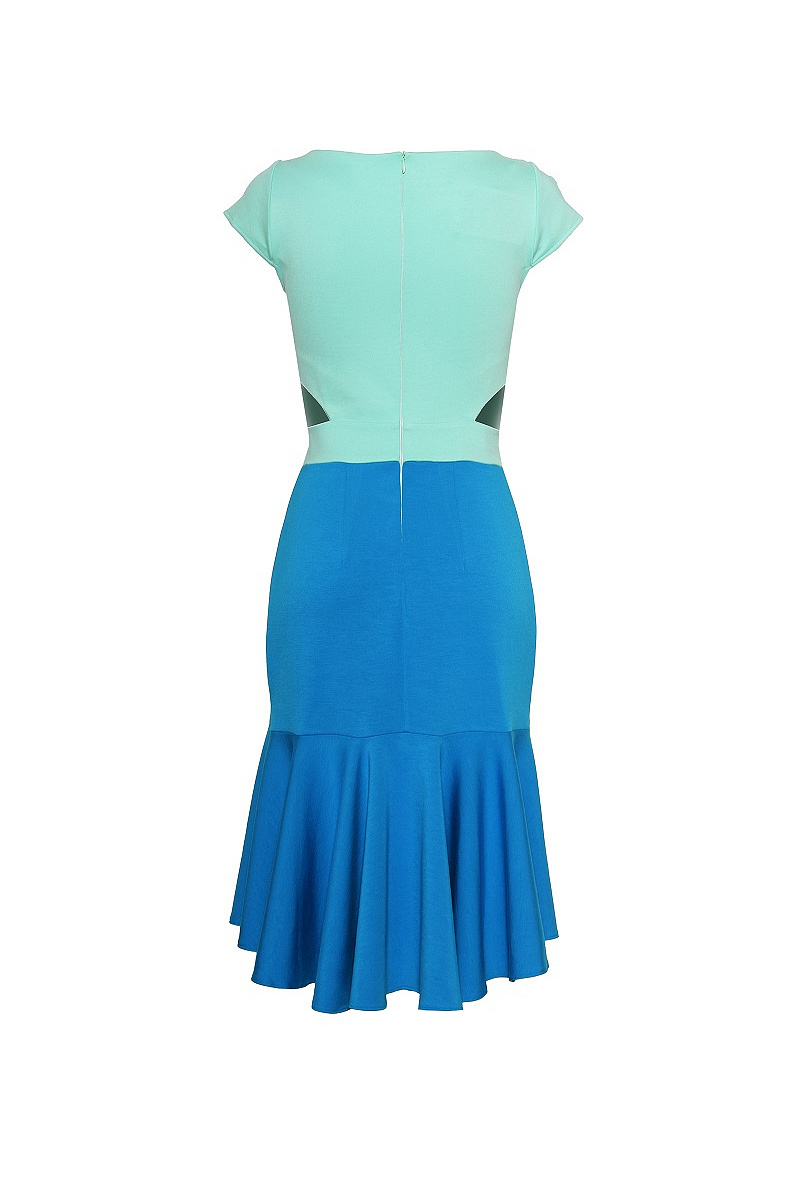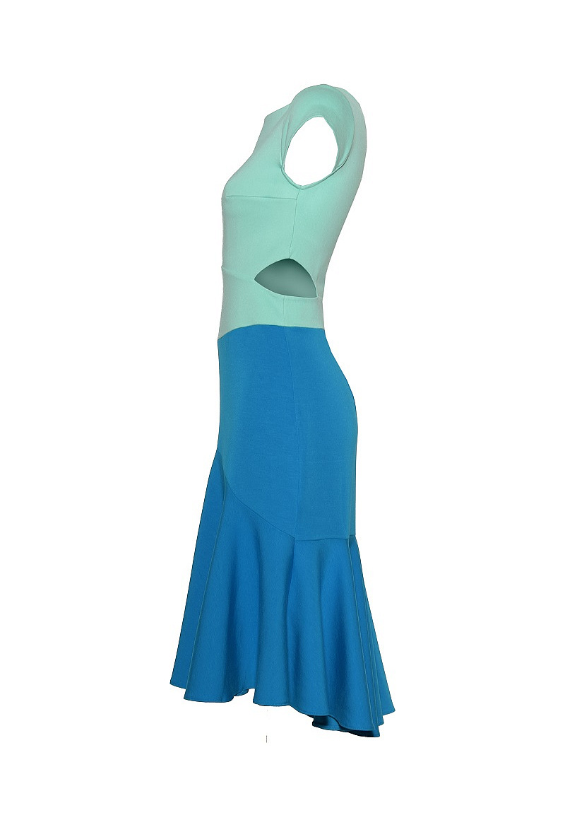 Платье с рукавами крылышки, боковыми вырезами на талии и юбкой волан.