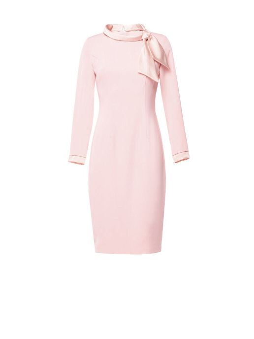 Платье футляр с бантом на воротнике и манжетами.