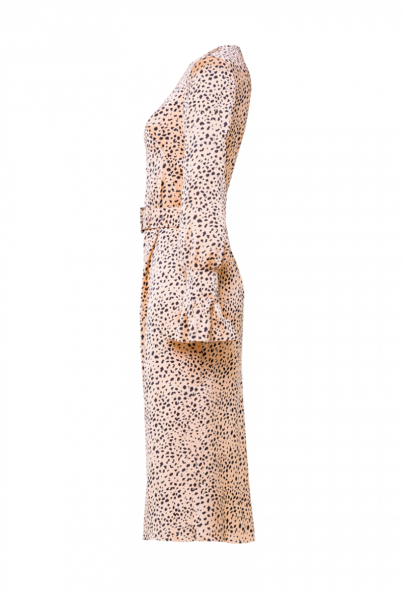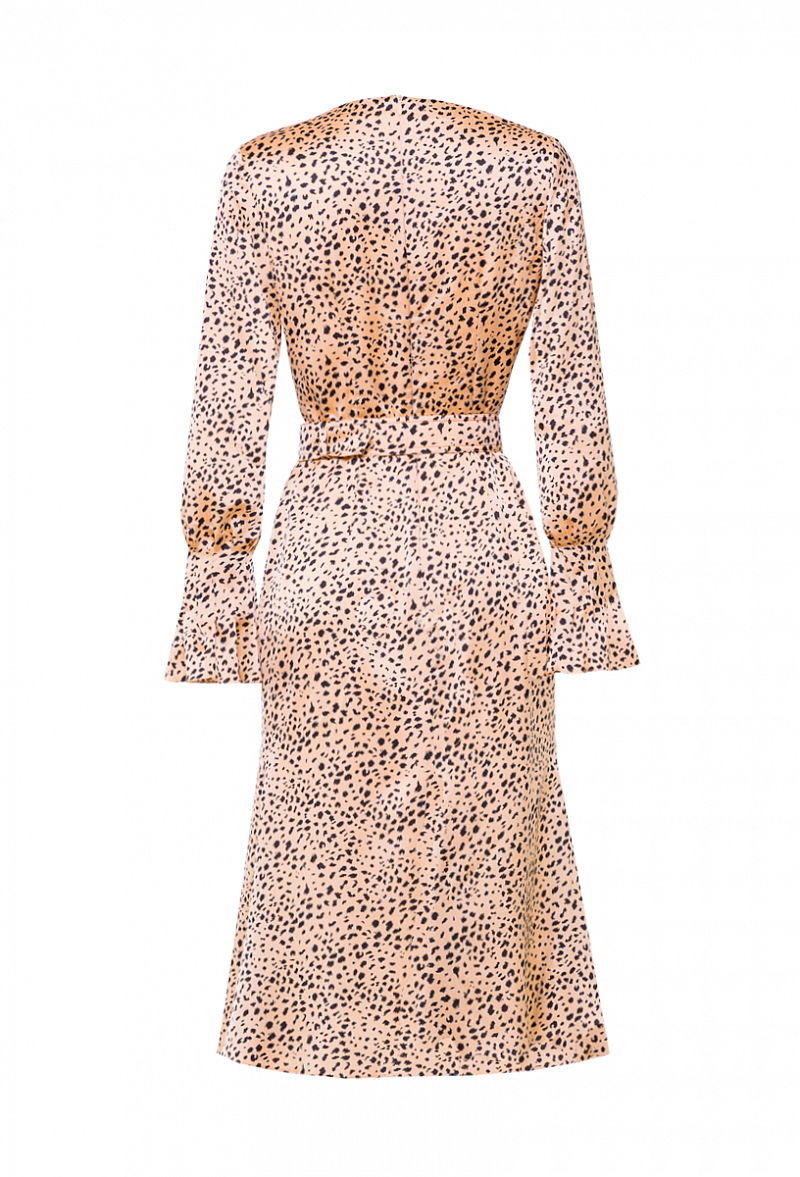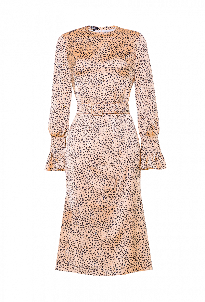 Платье шёлковое, юбка-годе бежевое с черным рисунком 04-02-22 SS