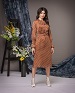 Платье шёлковое, отрезное по талии, юбка-годе, на рукавах сформированы вытачки-складки, образующие манжет с валанами.