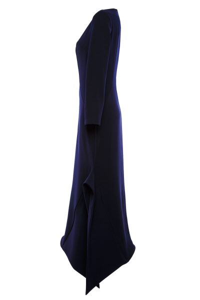 Платье цельнокройное, юбка с ассиметричными вставками, рукава ¾