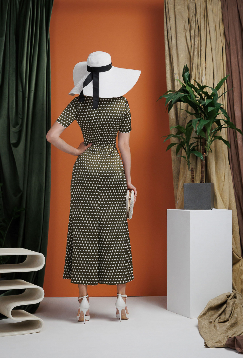 Платье "в горох" с декоративными складками 09-02-25 SS