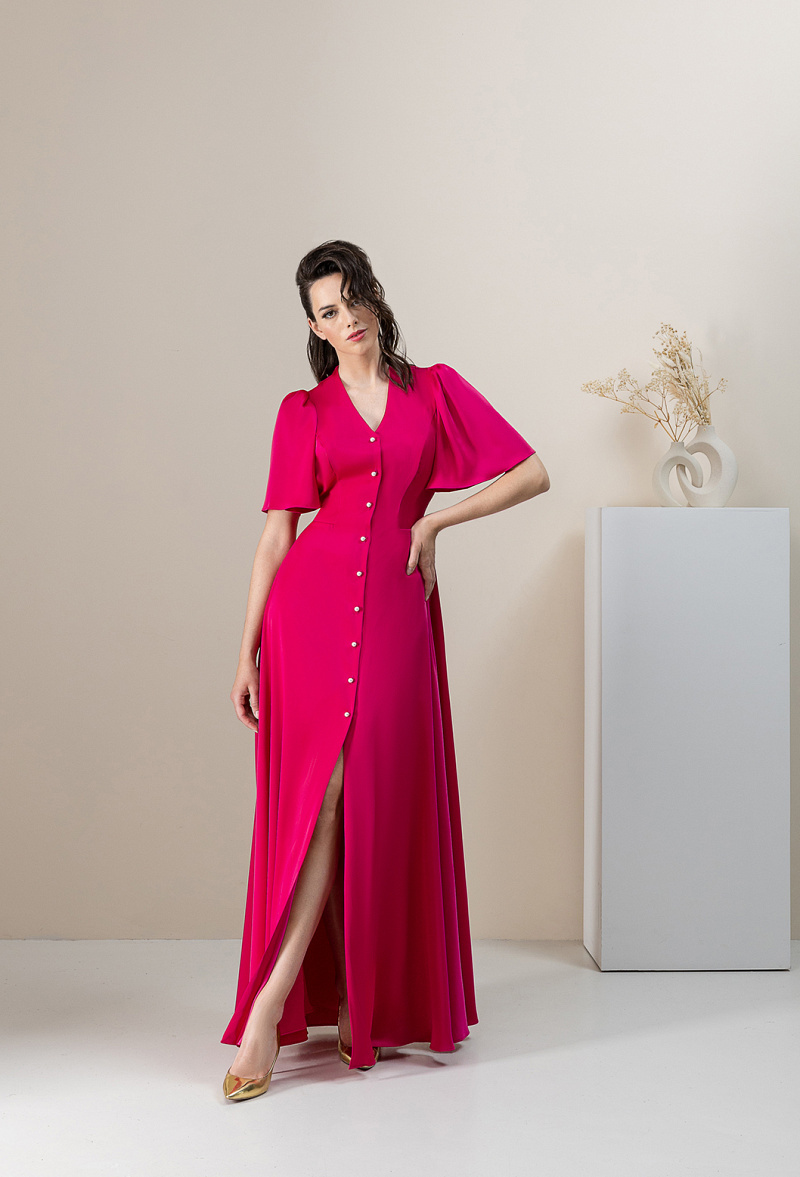 Платье в пол на пуговицах фуксия 07-01-23 SS