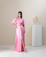 Платье в пол из легкой ткани на пуговицах. V-образный вырез, приталенное, с трапецевидной юбкой