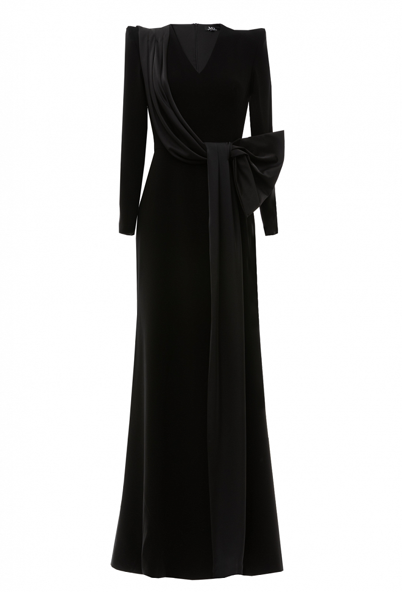 Платье в пол с драпировкой в виде банта на талии 15-01-24 FW