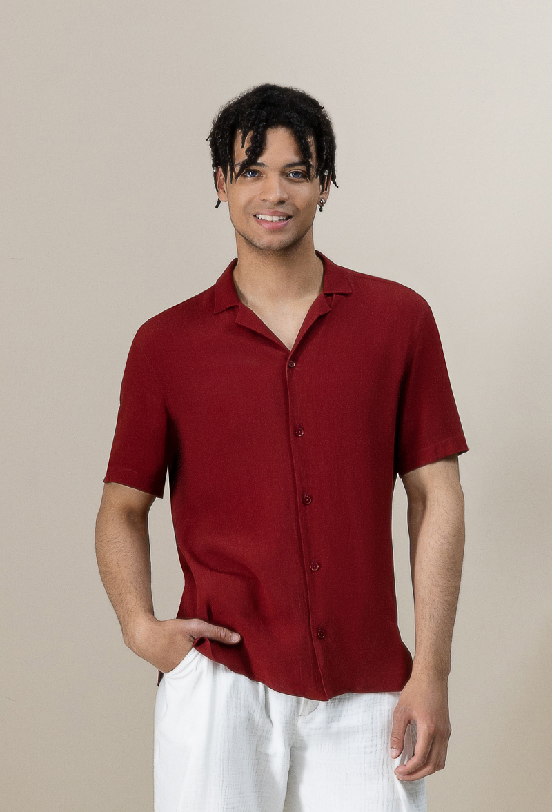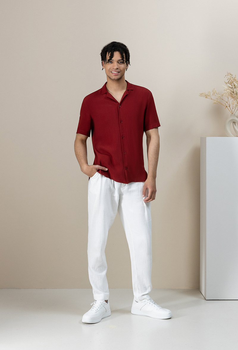 Рубашка с коротким рукавом бордовая 02-05-23 SS men