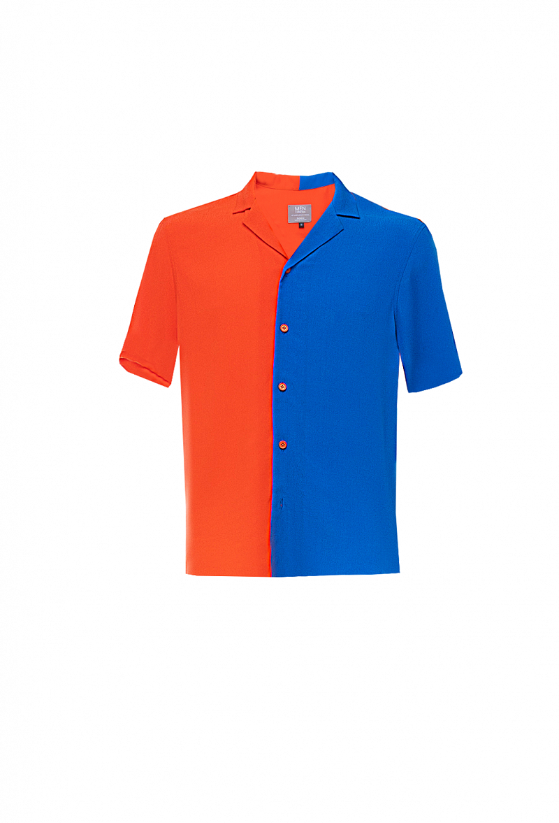 Рубашка с коротким рукавом сине-оранжевая 02-06-23 SS men