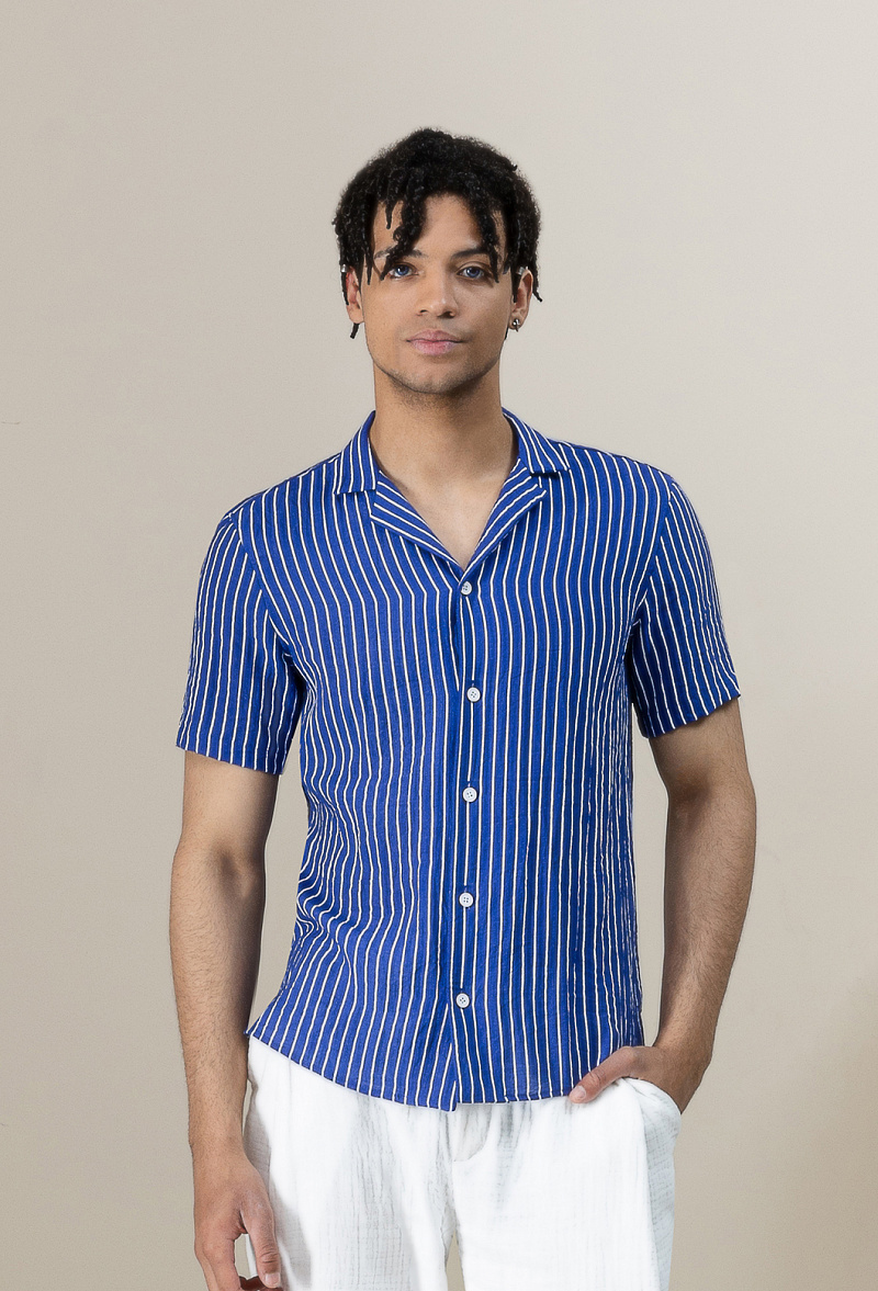 Рубашка с коротким рукавом синяя 02-02-23 SS men
