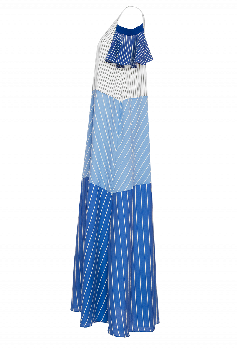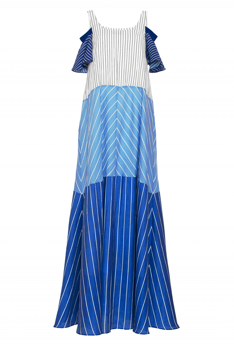 Сарафан с открытыми плечами. Волан на фигурном рукаве, юбка клеш, подклад - хлопок 100%