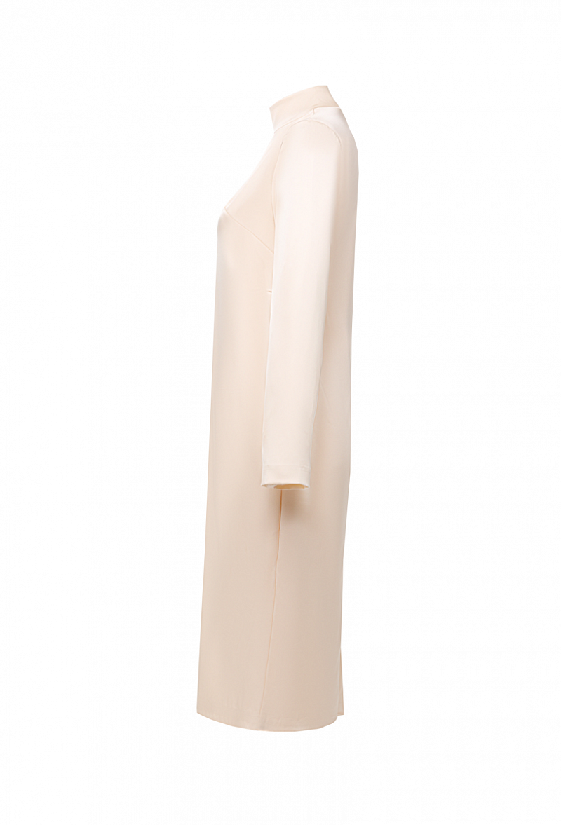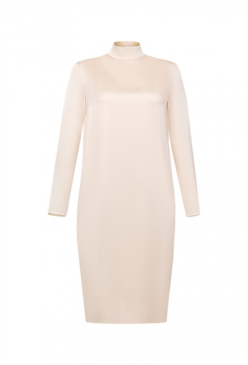 Шелковое прямое платье с втачным длинным рукавом и с воротником стойка