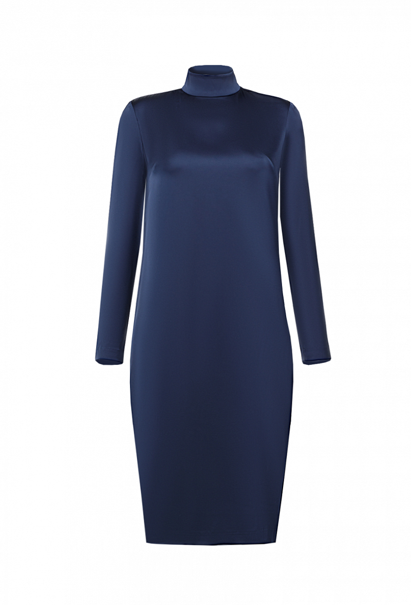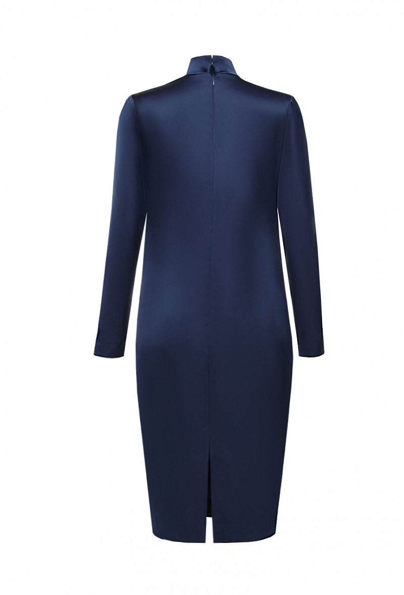Шелковое прямое платье тёмно-синее 06-02-21 FW