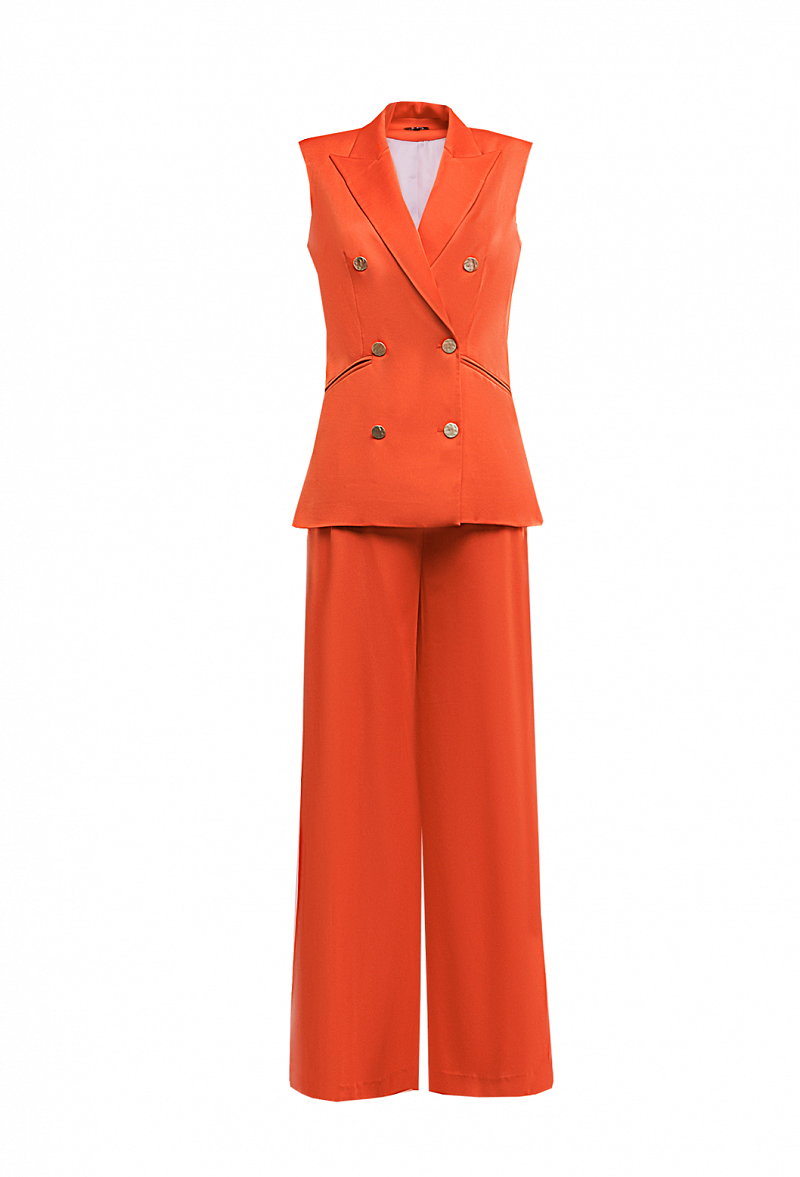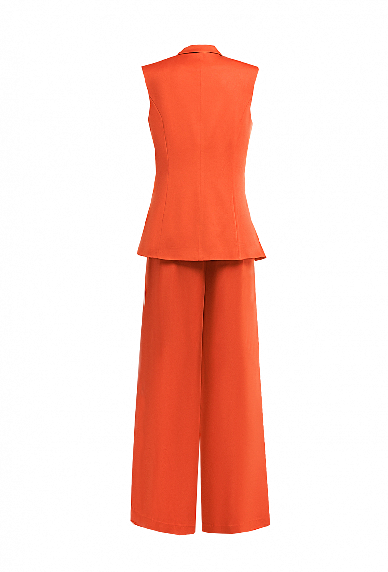 Шёлковый брючный костюм. Брюки палаццо. Жилет двубортный с английским воротником и карманов рамка.
