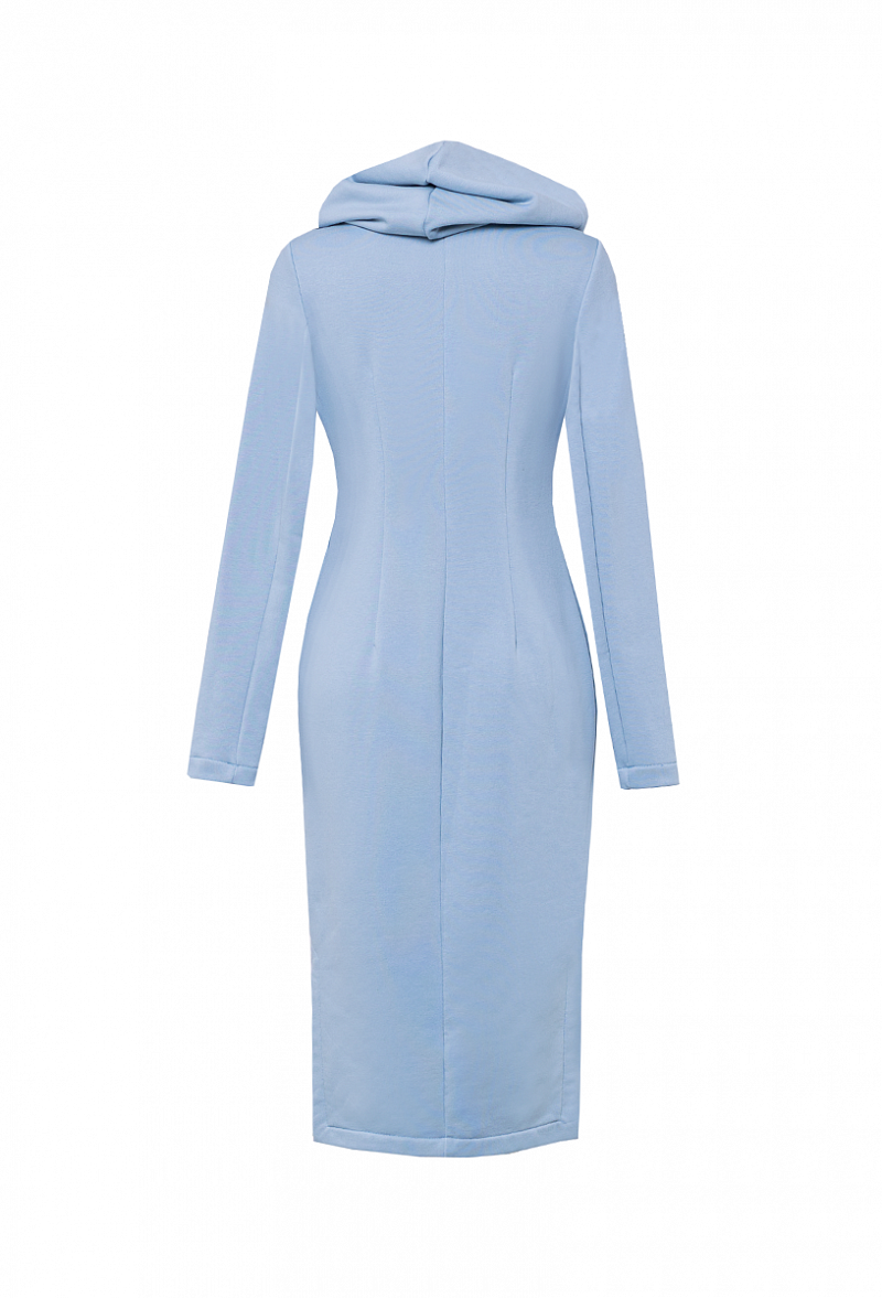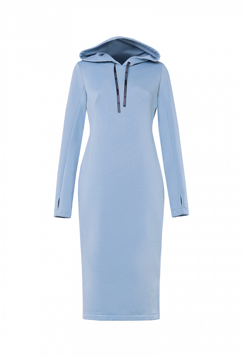 Спортивное платье с капюшоном и карманами, по бокам разрезы. Рукава удлиненные с отверстием для большого пальца.