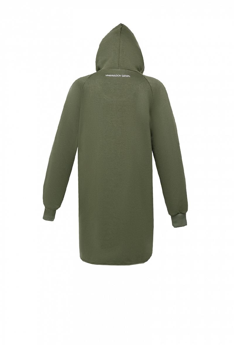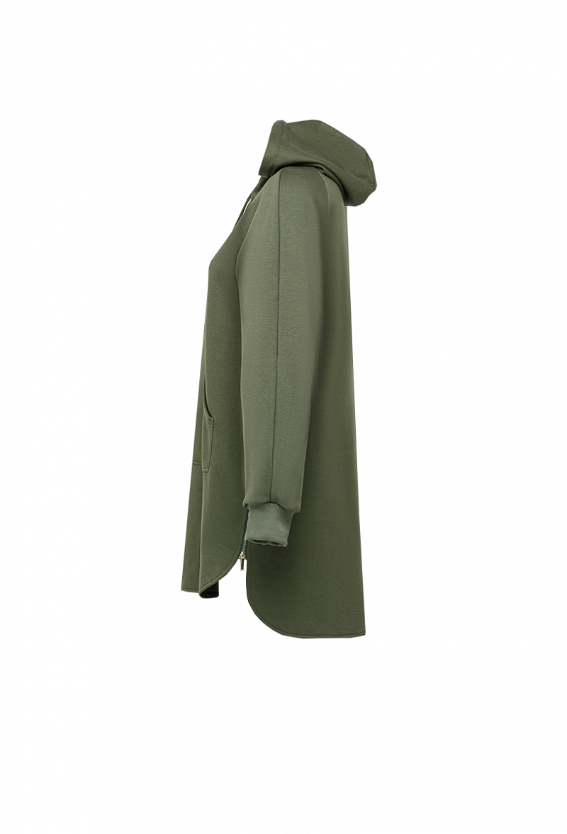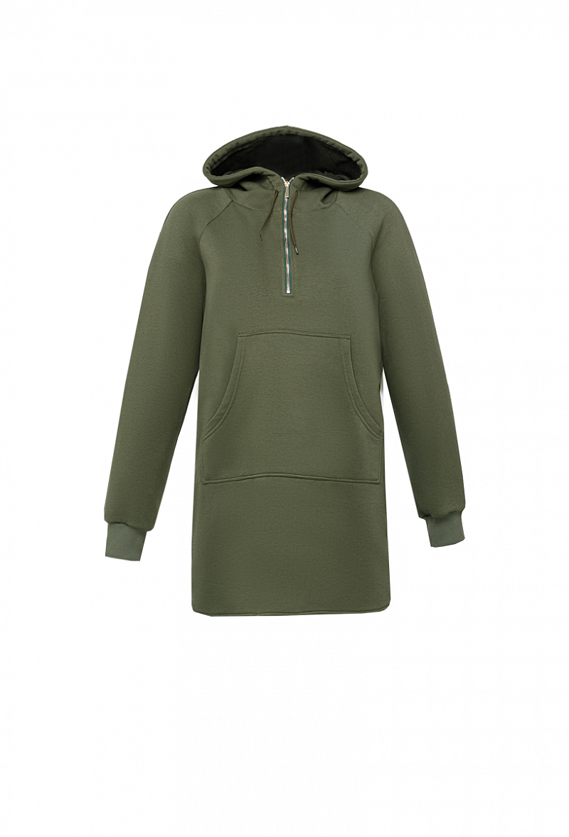 Спортивное платье (удлиненное худи) на молнии с капюшоном с карманом,сбоку по низу вшиты молнии.
