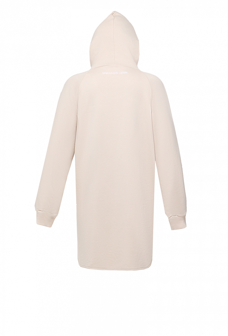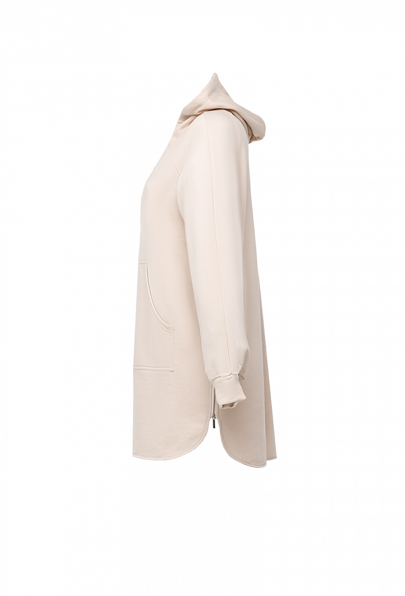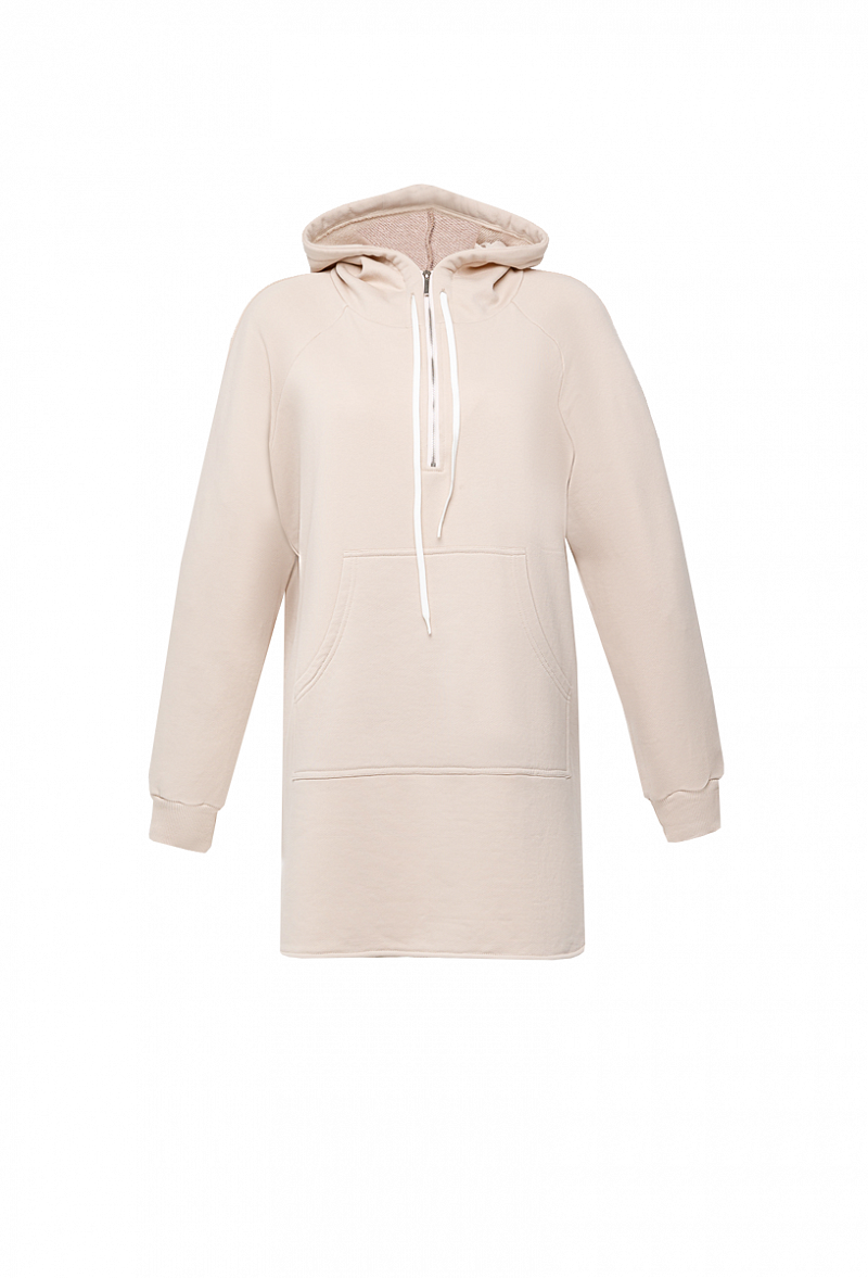 Спортивное платье (удлиненное худи) на молнии с капюшоном с карманом,сбоку по низу вшиты молнии.