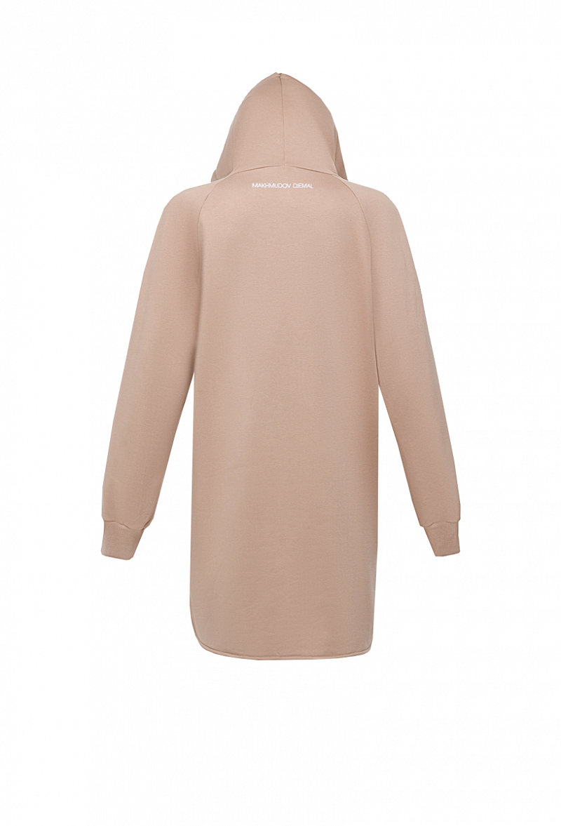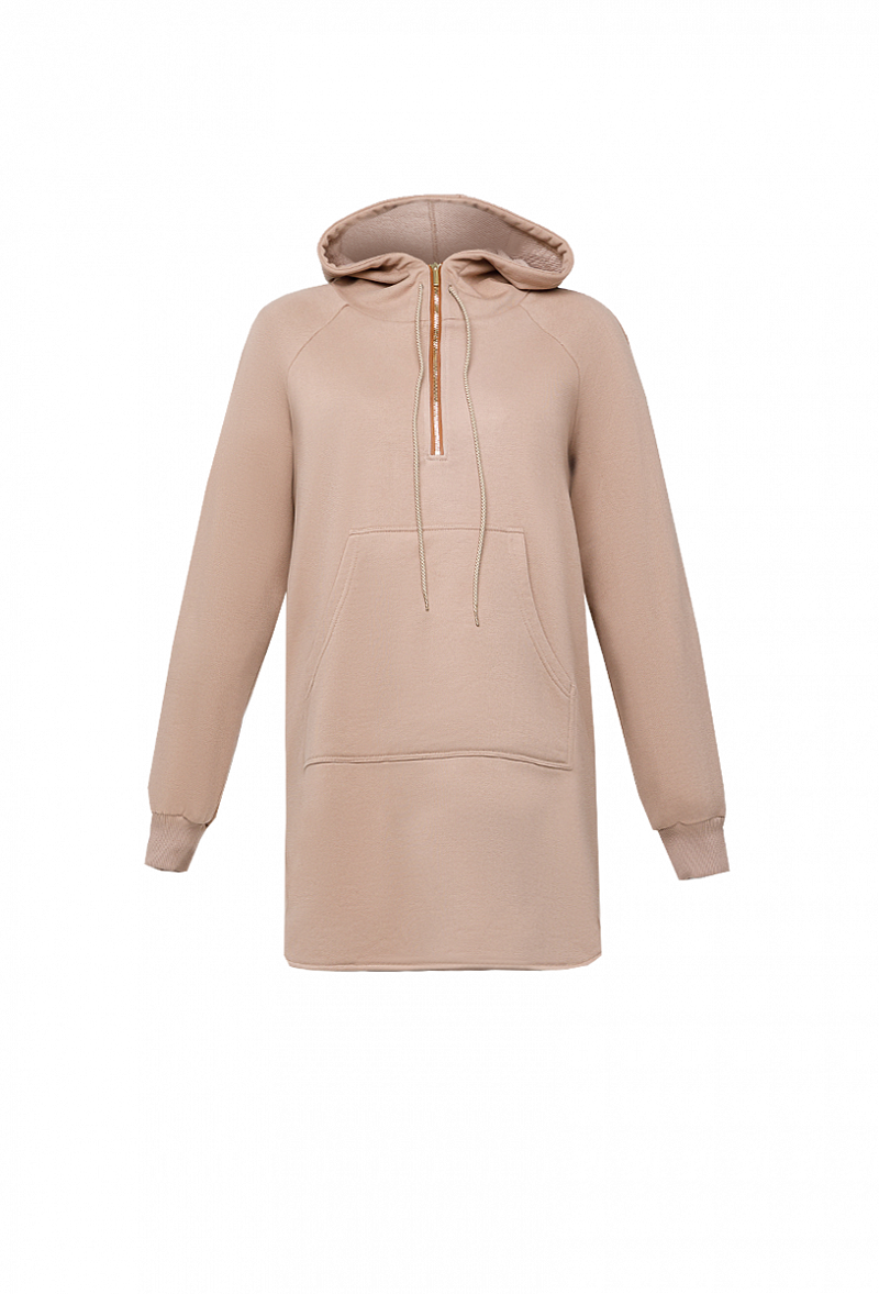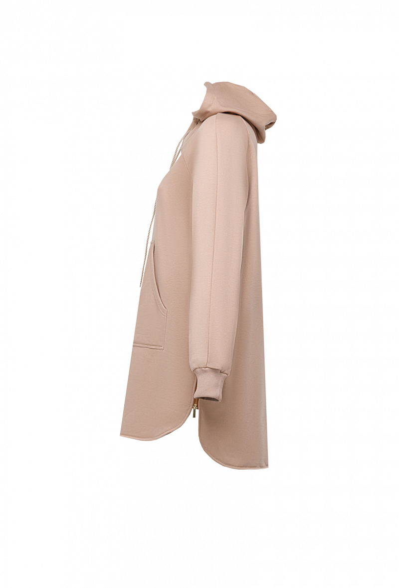 Спортивное платье (удлиненное худи) на молнии с капюшоном с карманом,сбоку по низу вшиты молнии.