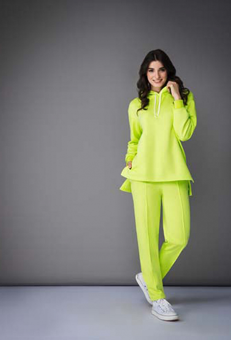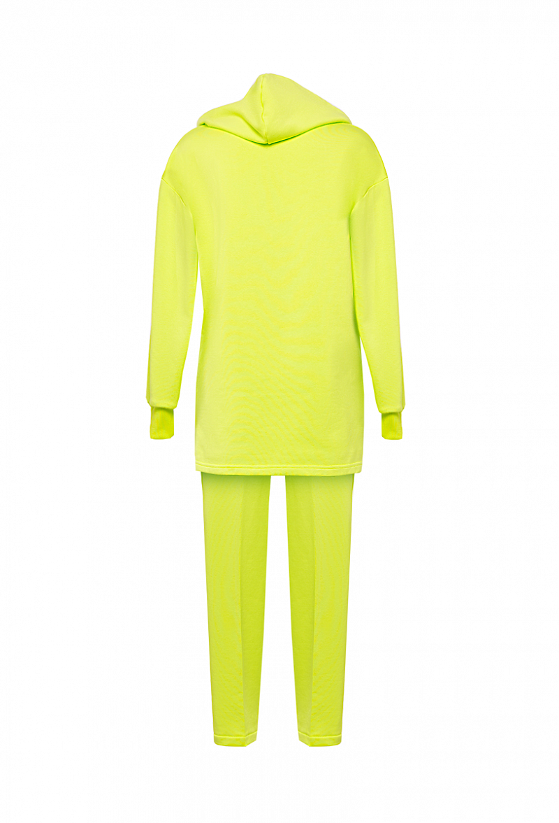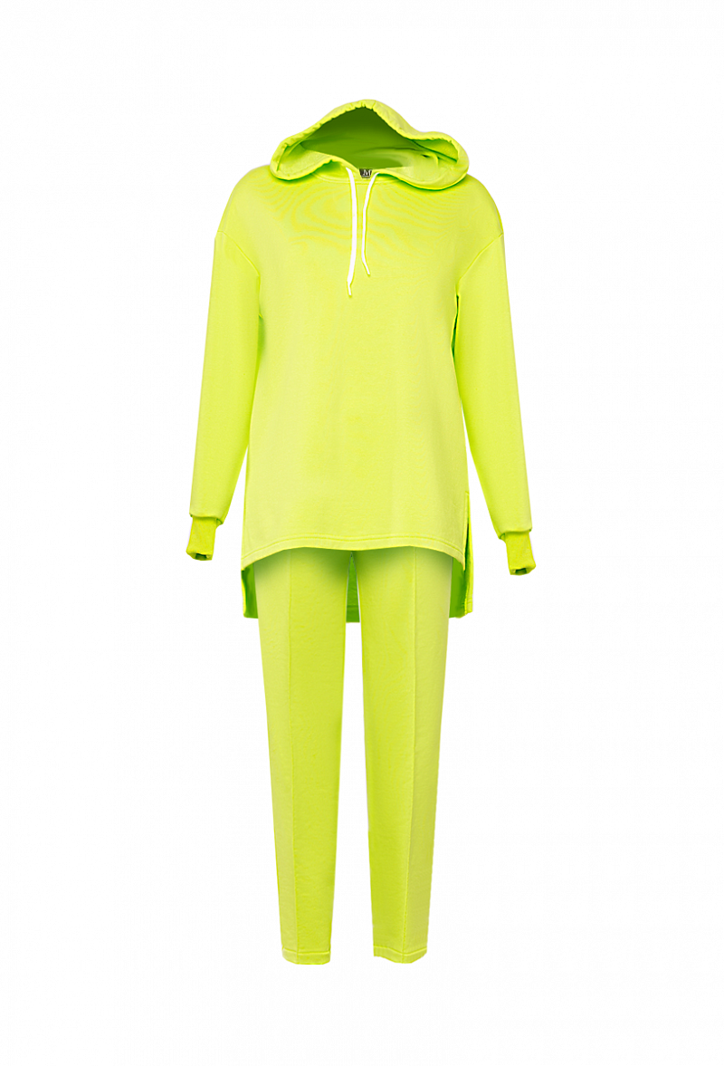 Спортивный костюм с брюками. Худи с капюшоном и длинными рукавами с манжетами. Брюки заужены к низу, со стрелками спереди.