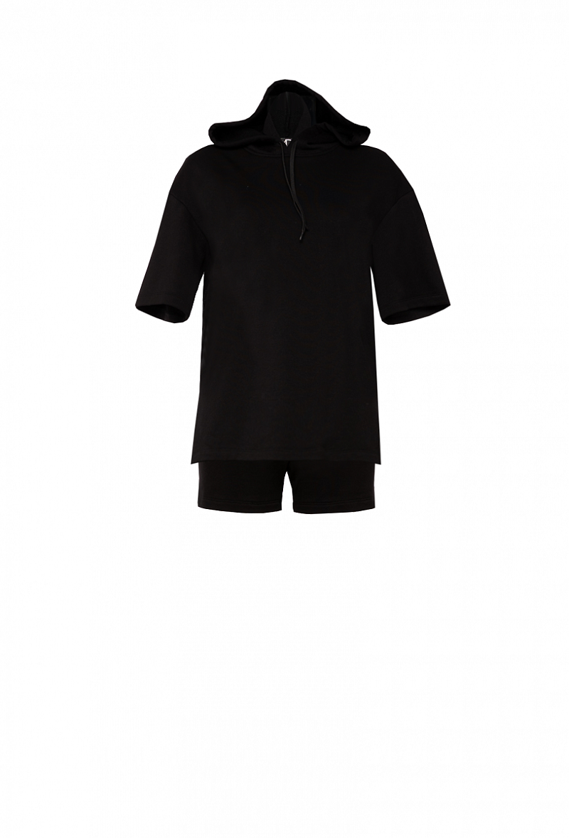 Спортивный костюм с шортами. Шортики с разрезами сбоку. Худи с капюшоном и короткими рукавами.