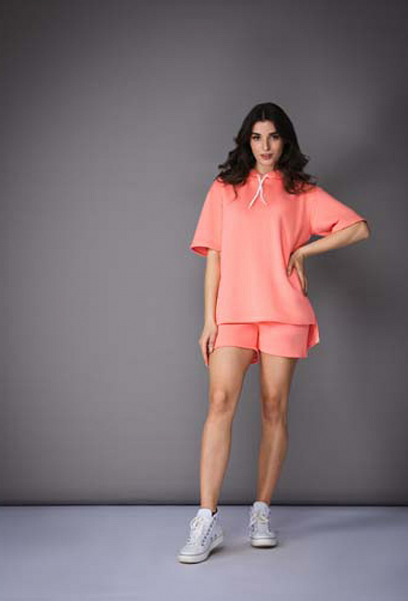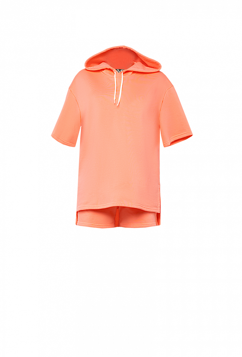 Спортивный костюм с шортами. Шортики с разрезами сбоку. Худи с капюшоном и короткими рукавами.