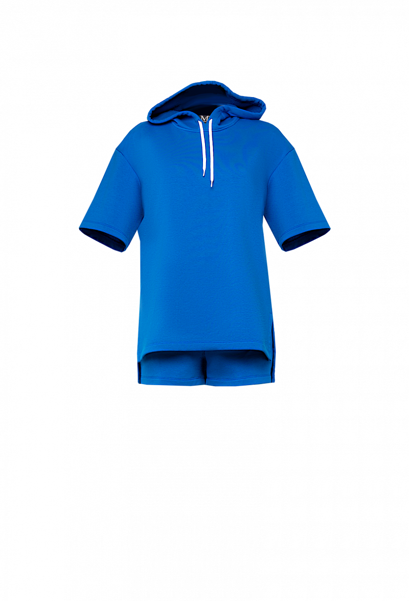 Спортивный костюм с шортами. Шортики с разрезами сбоку. Худи с капюшоном и короткими рукавами.