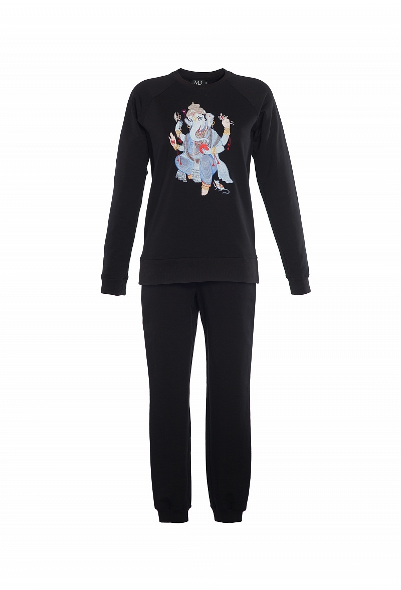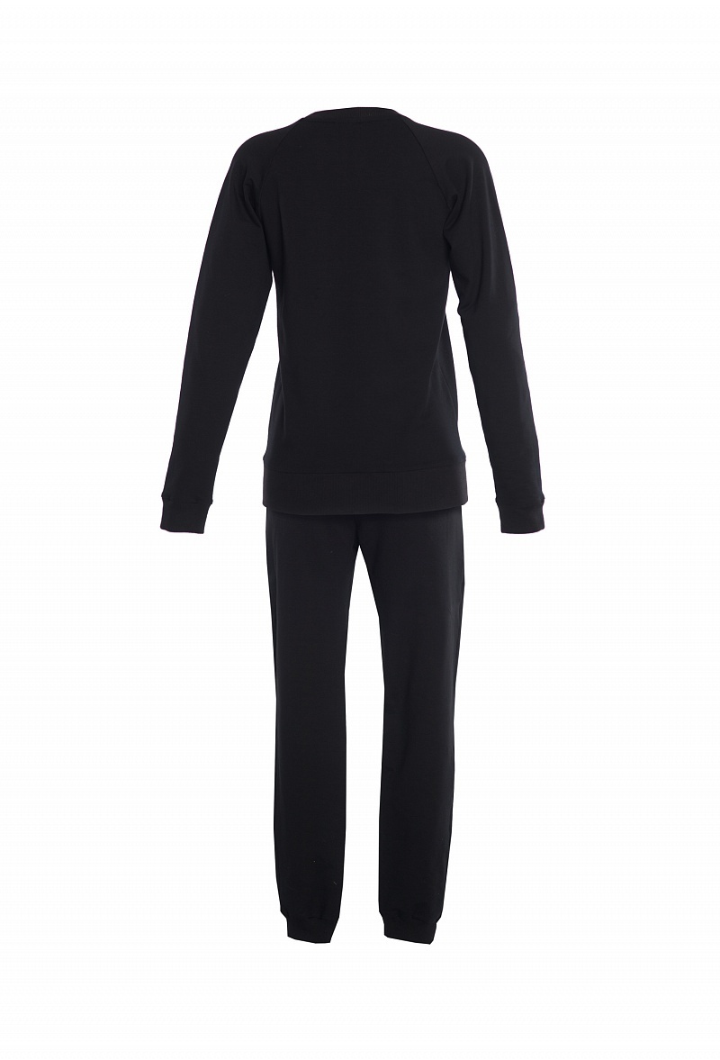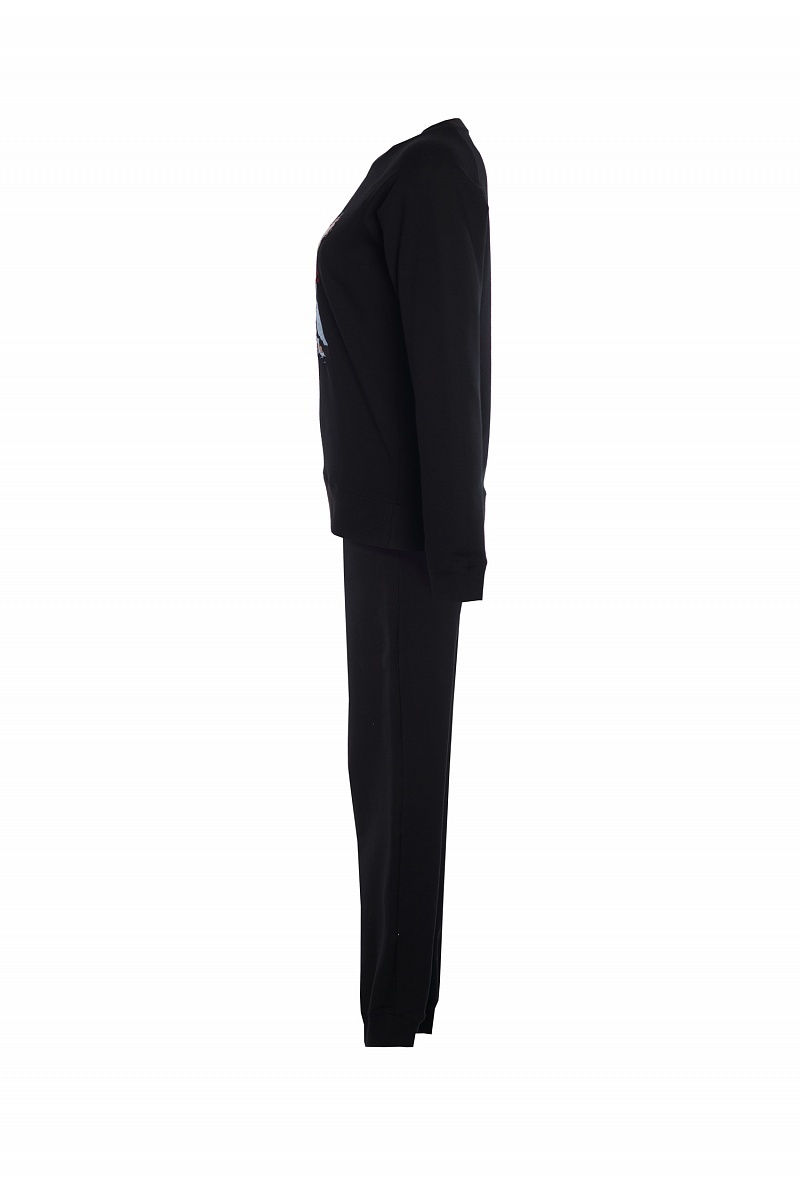 Спортивный костюм: свитшот с длинным рукавом и брюки с манжетом. На полочке свитшота эксклюзивная вышивка-аист.