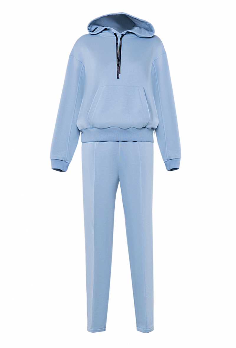 Спортивное платье с капюшоном и карманами, по бокам разрезы. Рукава удлиненные с отверстием для большого пальца.