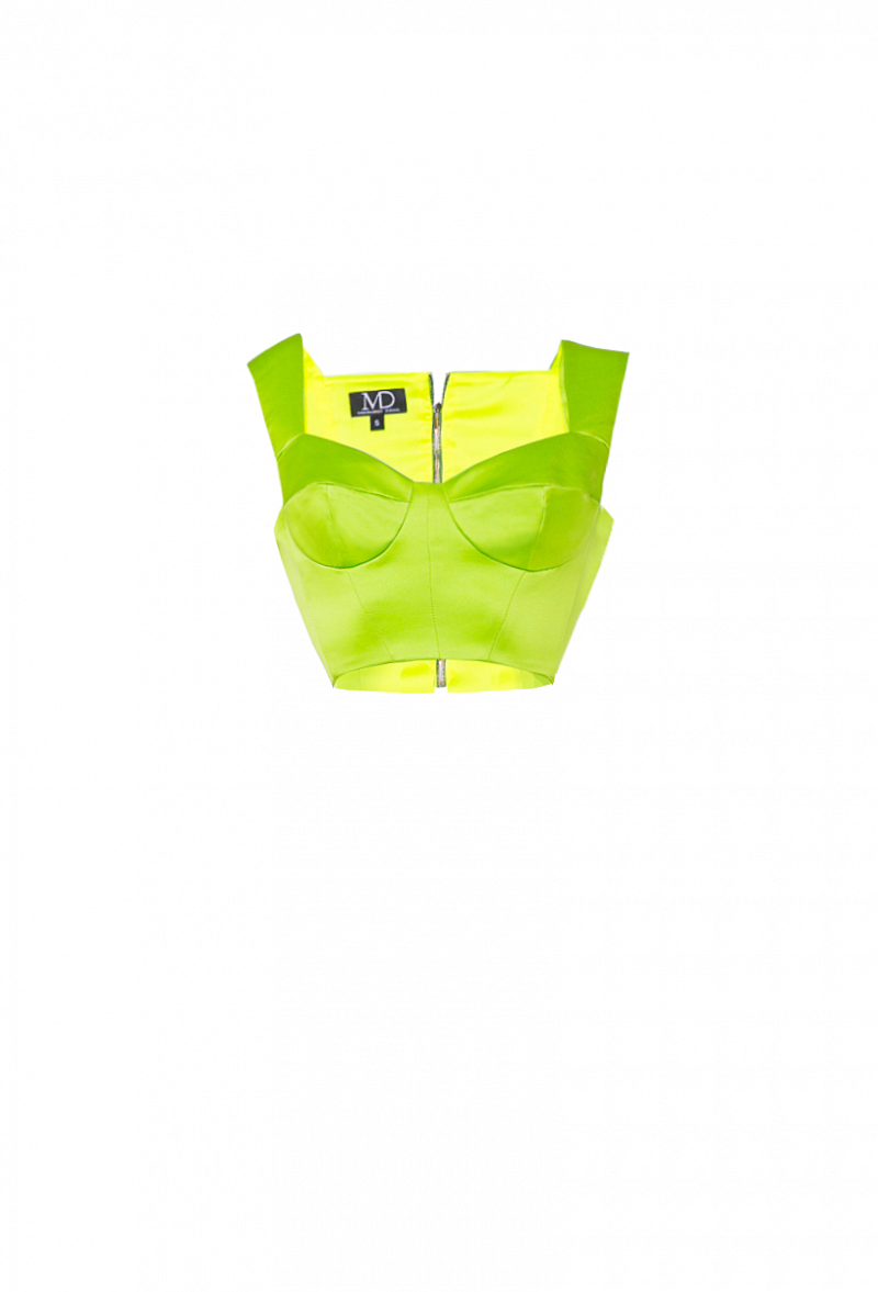 Топ джинсовый с отстрочкой в виде корсета, застежка «молния» на спинке.