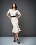 Трикотажное платье с поясом и коротким рукавом, с глубоким декольте. Юбка годе.бежевый