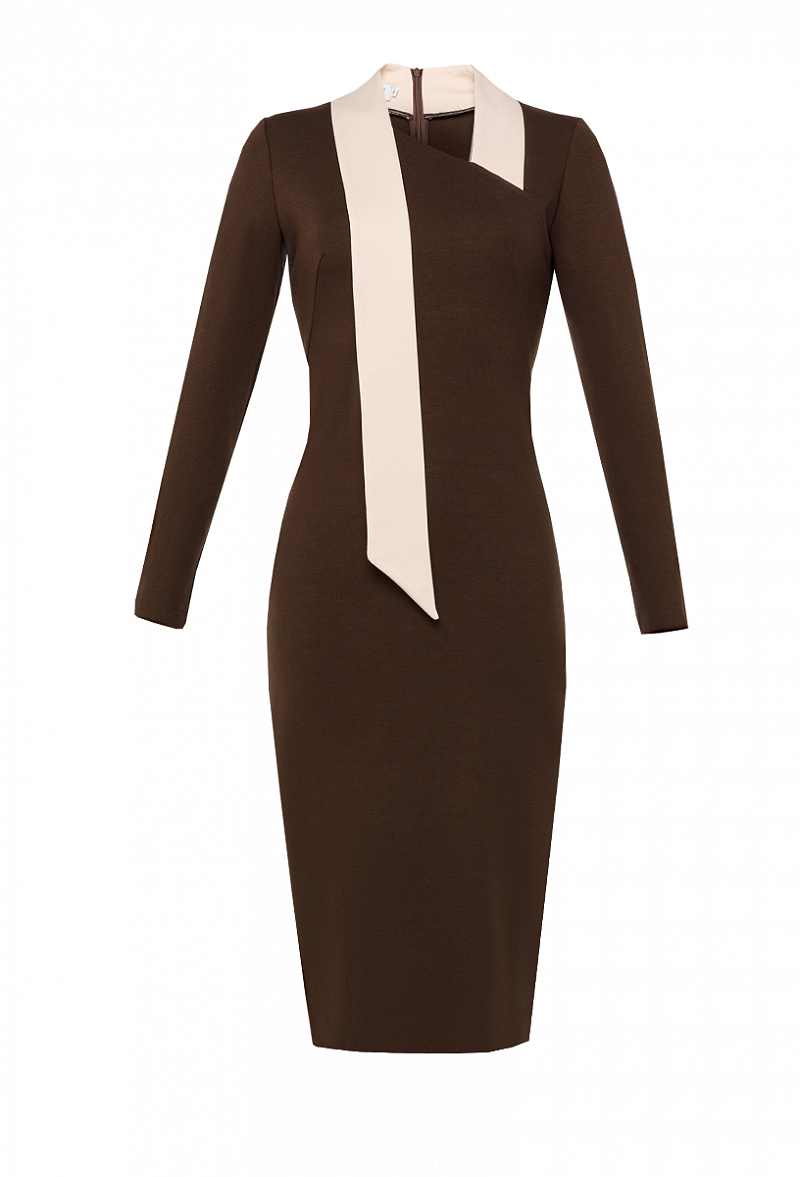 Трикотажное платье-футляр с имитацией воротника- шарф